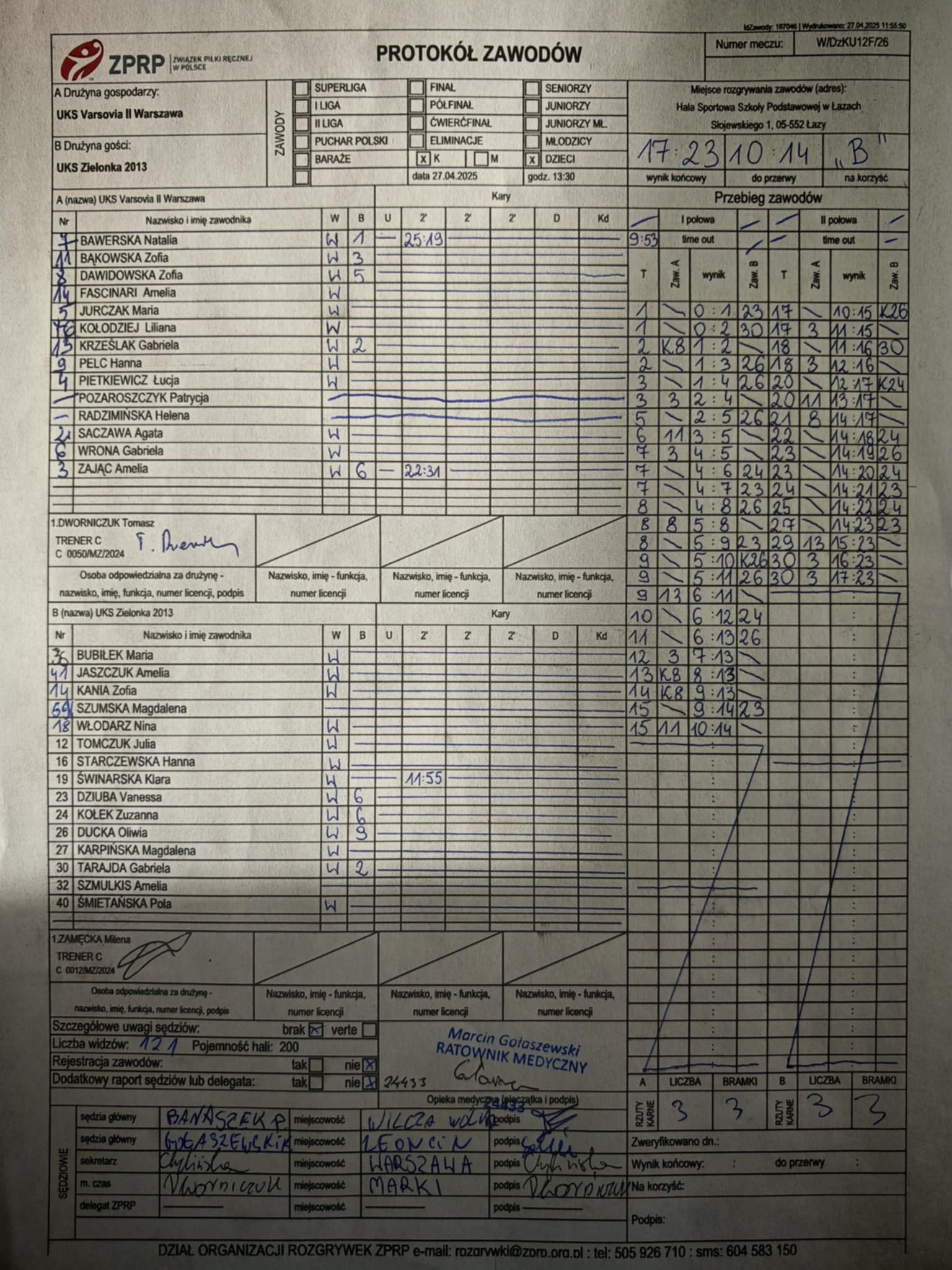 | 25 | 2025-04-13 11:45:00 | UKS Zielonka 2013 | SKF ORLEN Wisła Płock 2013 | Sędziowie: WĘGRZYN Jakub — — Delegat: |