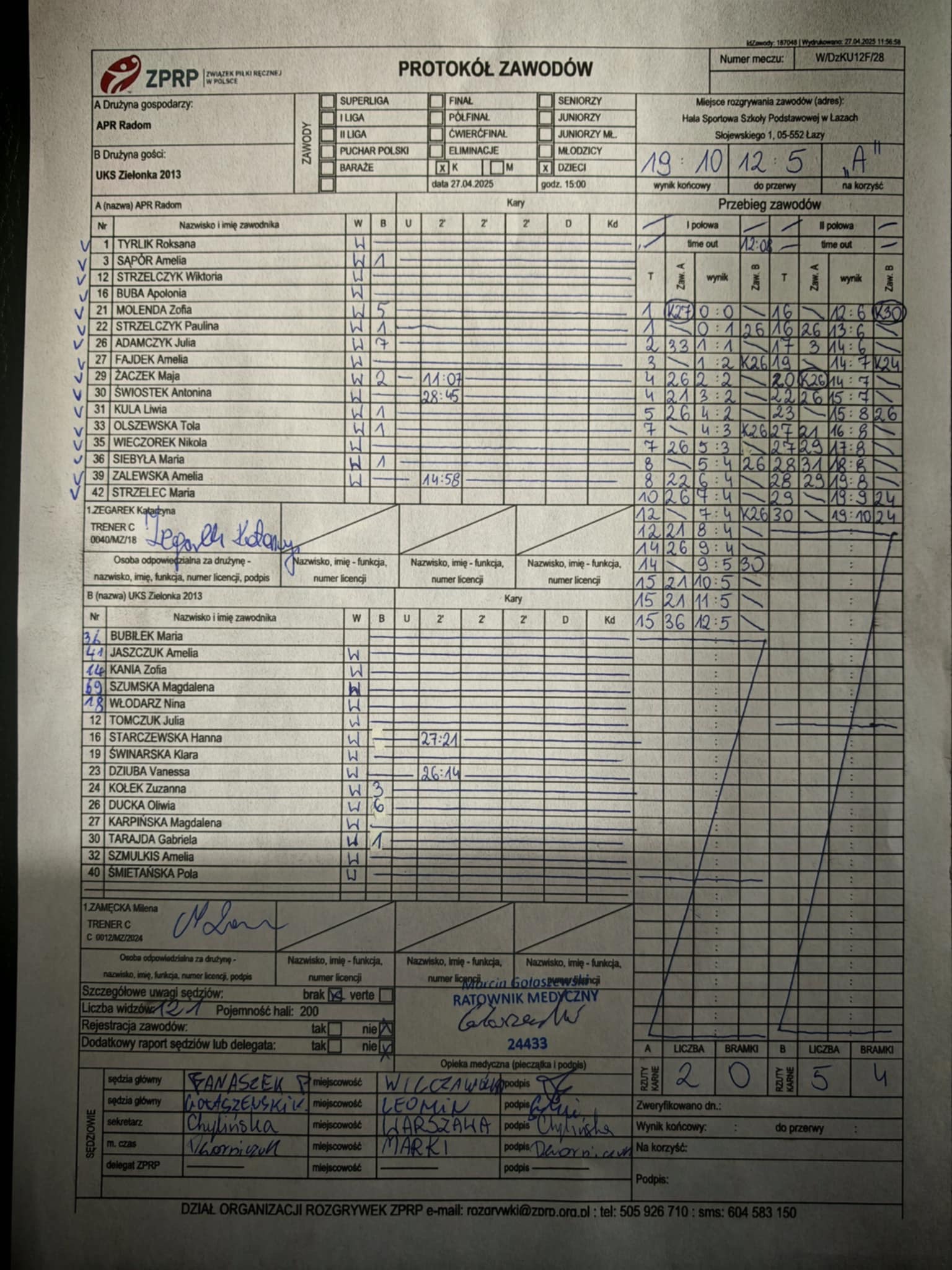| 28 | 2025-04-27 15:00:00 | APR Radom | UKS Zielonka 2013 | Sędziowie: BANASZEK Piotr — — Delegat: |