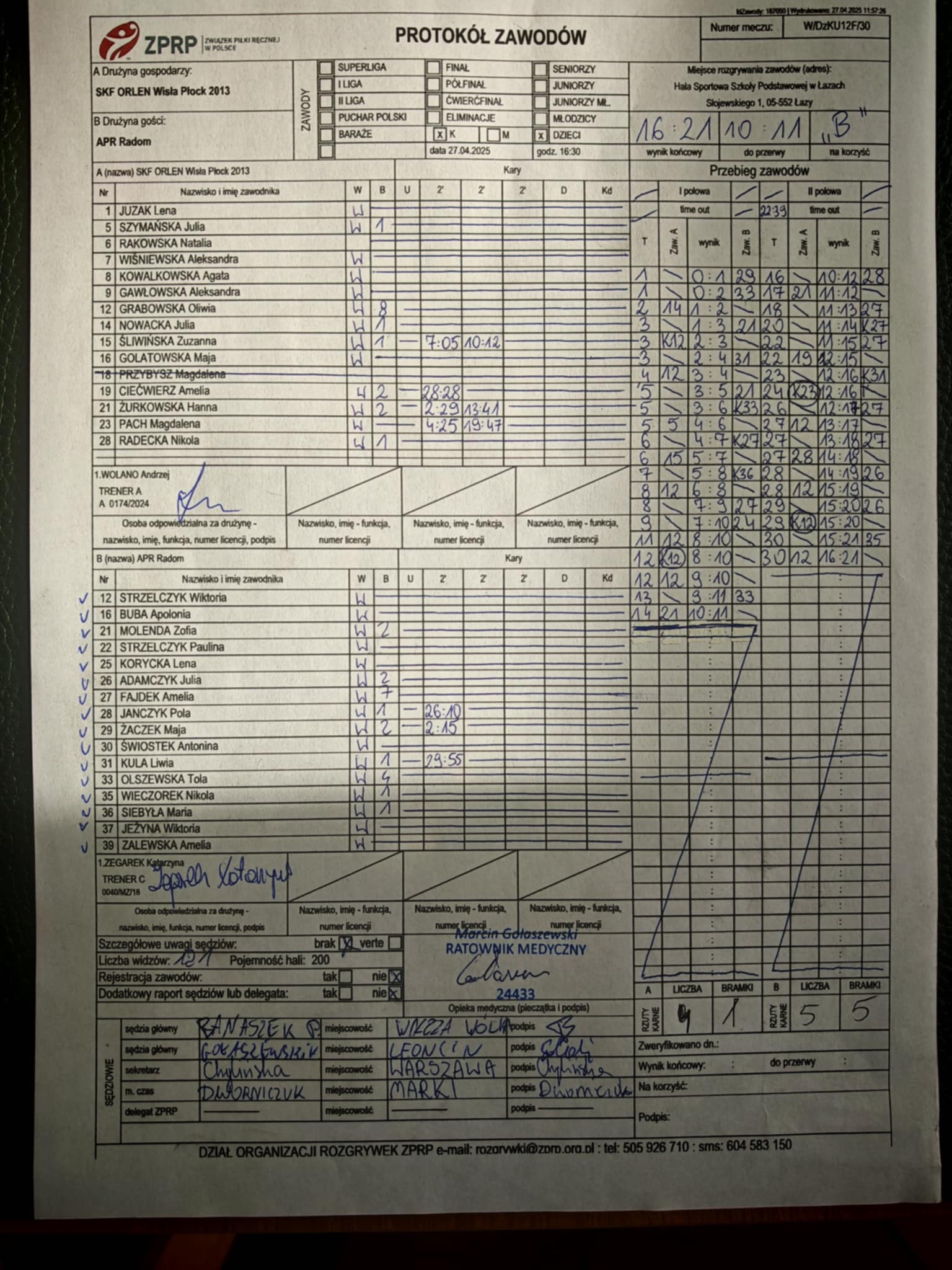 | 30 | 2025-04-27 16:30:00 | SKF ORLEN Wisła Płock 2013 | APR Radom | Sędziowie: BANASZEK Piotr — — Delegat: |