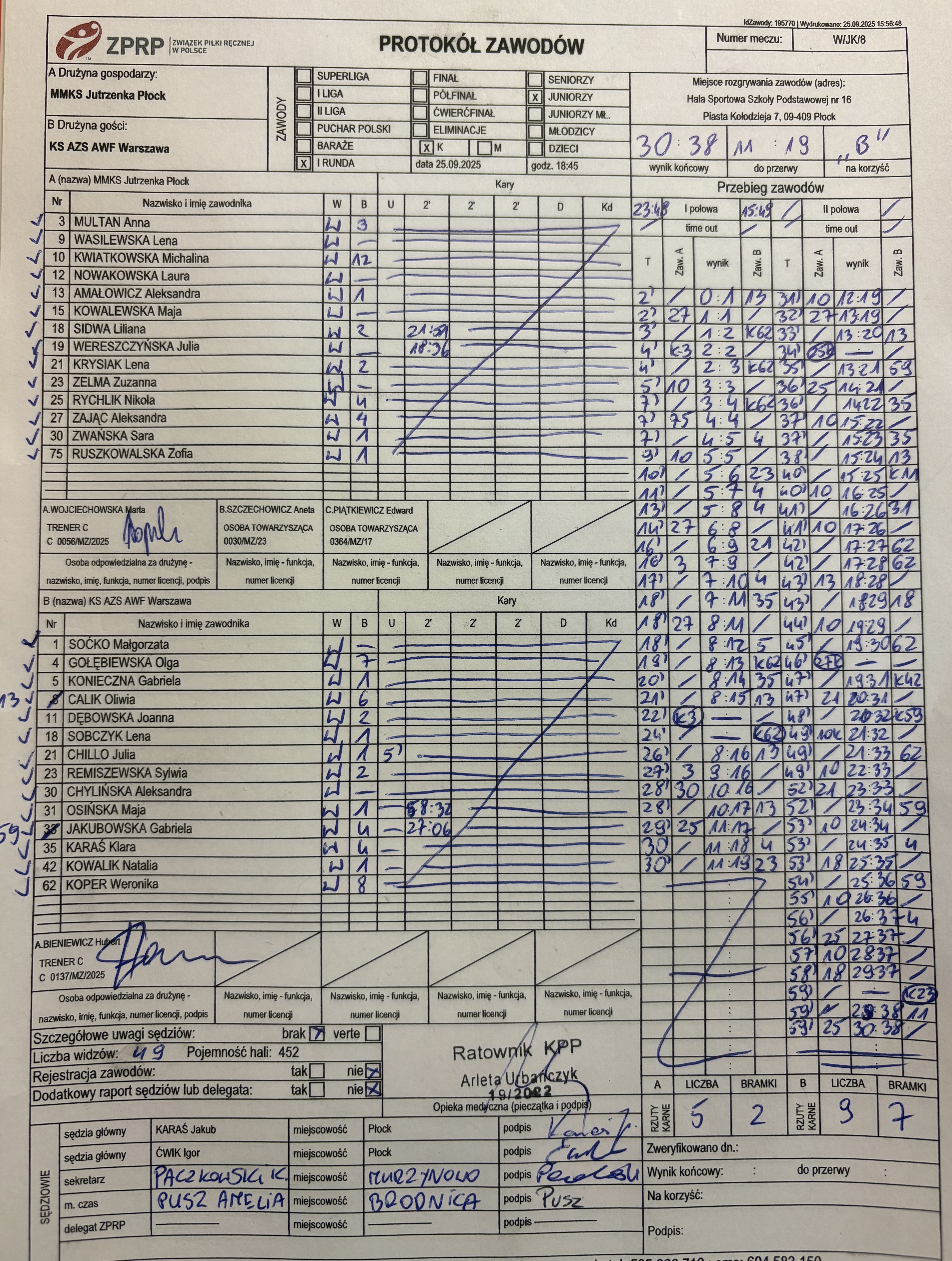 | 30 | 2025-10-19 15:00:00 | MMKS Jutrzenka Płock | KPR ROKiS Radzymin | Sędziowie: KARAŚ Jakub LESZCZYŃSKI Szymon Delegat: |