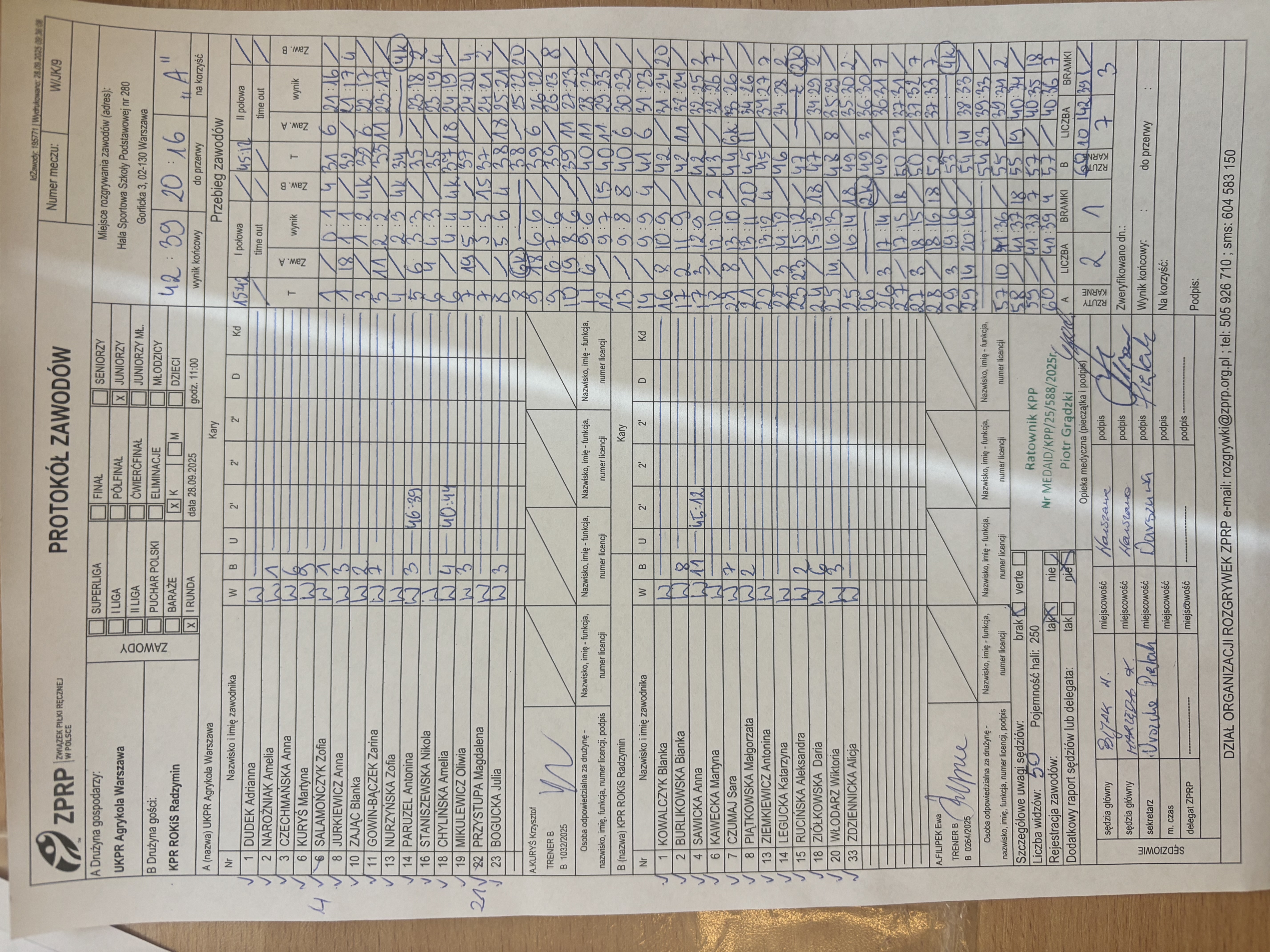 | 9 | 2025-09-28 11:00:00 | UKPR Agrykola Warszawa | KPR ROKiS Radzymin | Sędziowie: BIJAK Weronika MARZĘDA Kacper Delegat: |