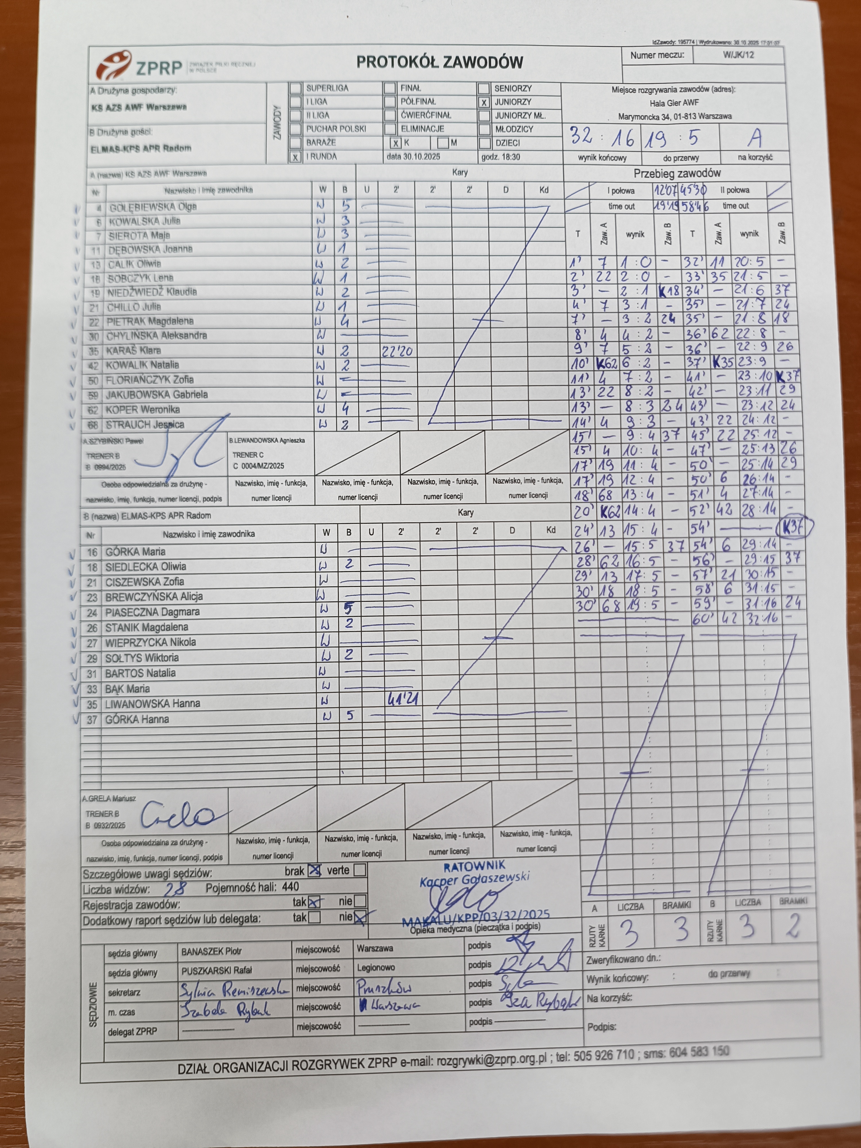 ELMAS-KPS APR Radom | Sędziowie: BANASZEK Piotr PUSZKARSKI Rafał Delegat: |