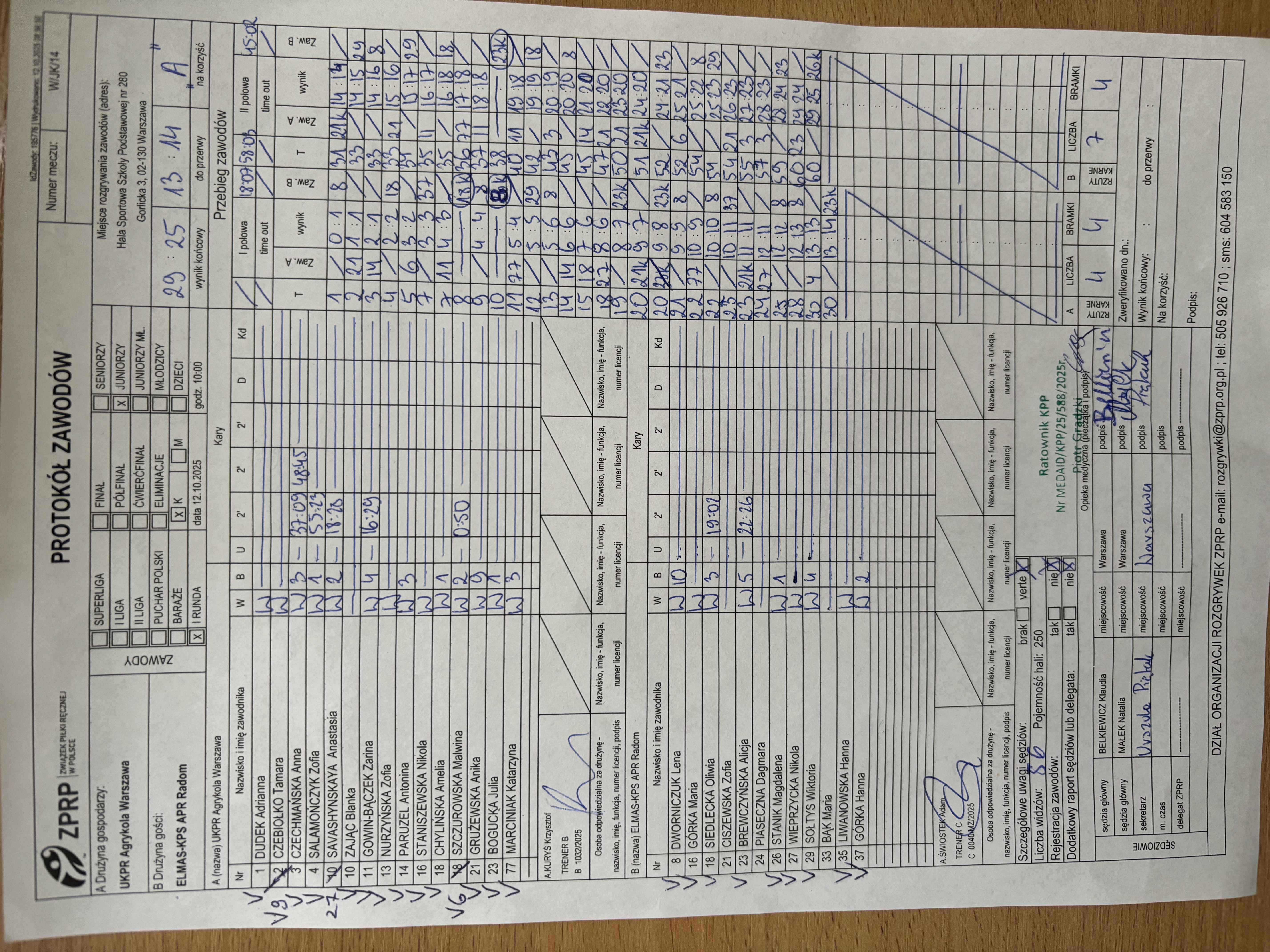 | 14 | 2025-10-12 10:00:00 | UKPR Agrykola Warszawa | ELMAS-KPS APR Radom | Sędziowie: BELKIEWICZ Klaudia MAŁEK Natalia Delegat: |