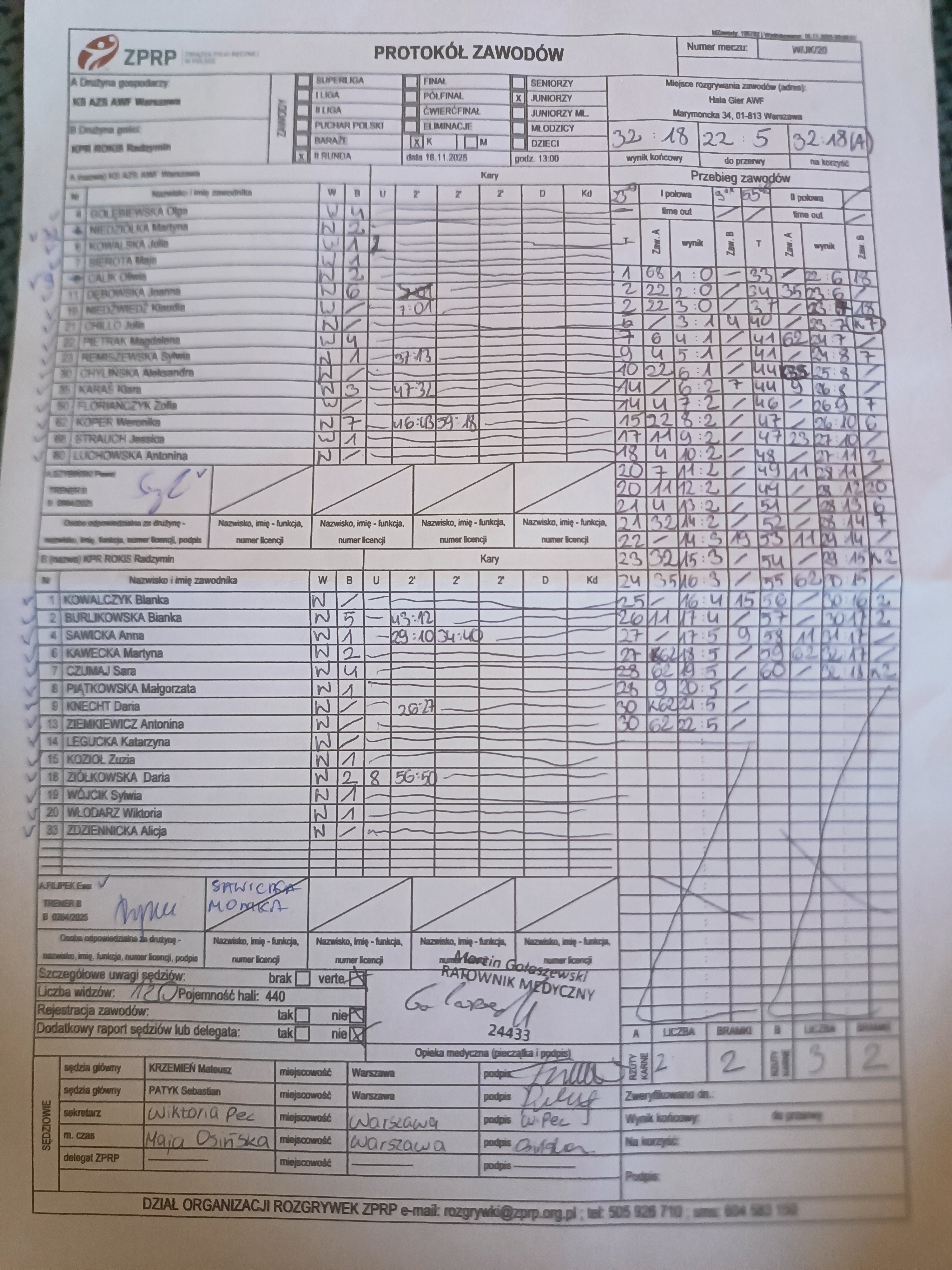 | 5 | 2025-09-21 10:00:00 | KPR ROKiS Radzymin | KS AZS AWF Warszawa | Sędziowie: KRZEMIEŃ Mateusz MARSZAŁEK Kamil Delegat: |
