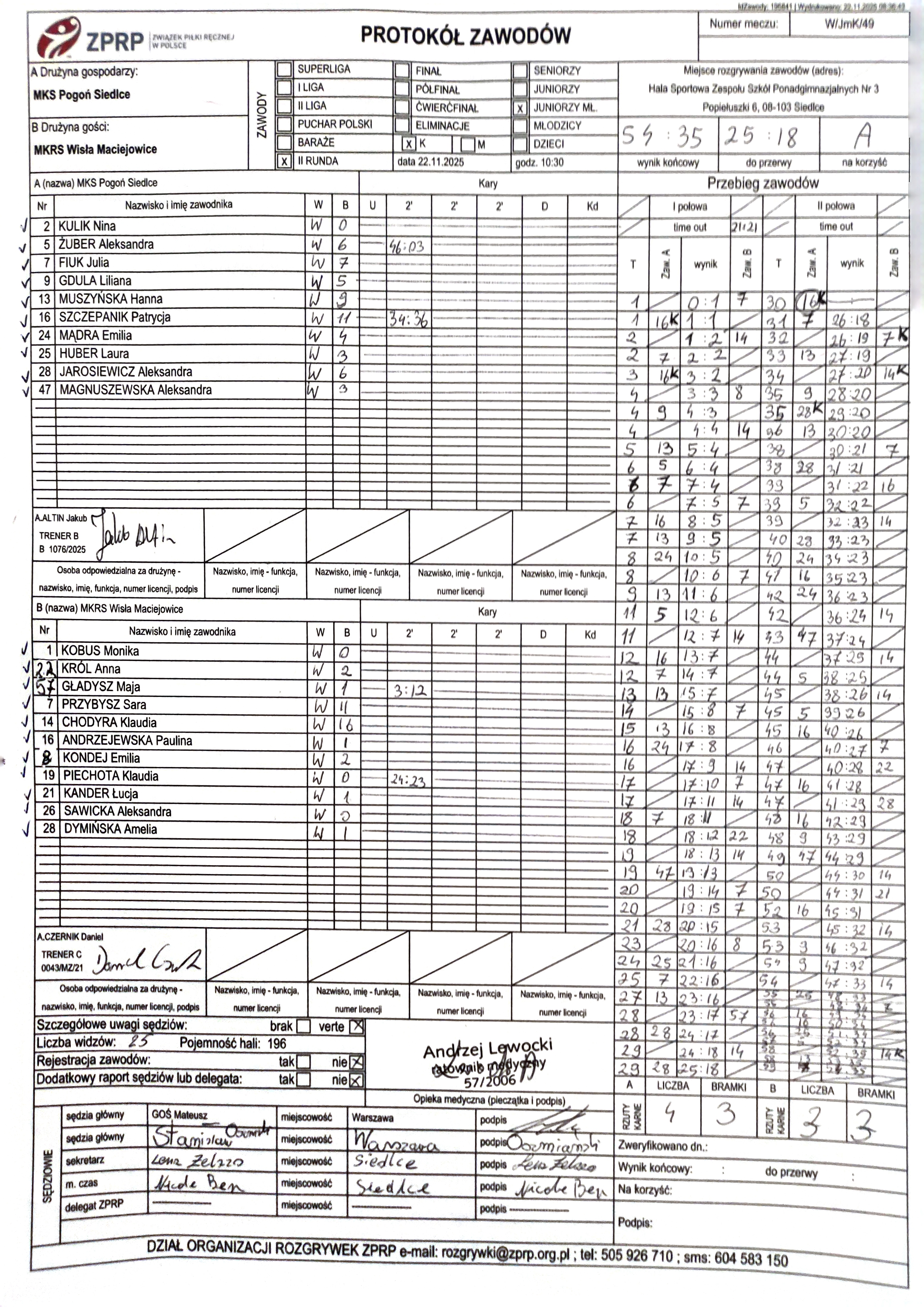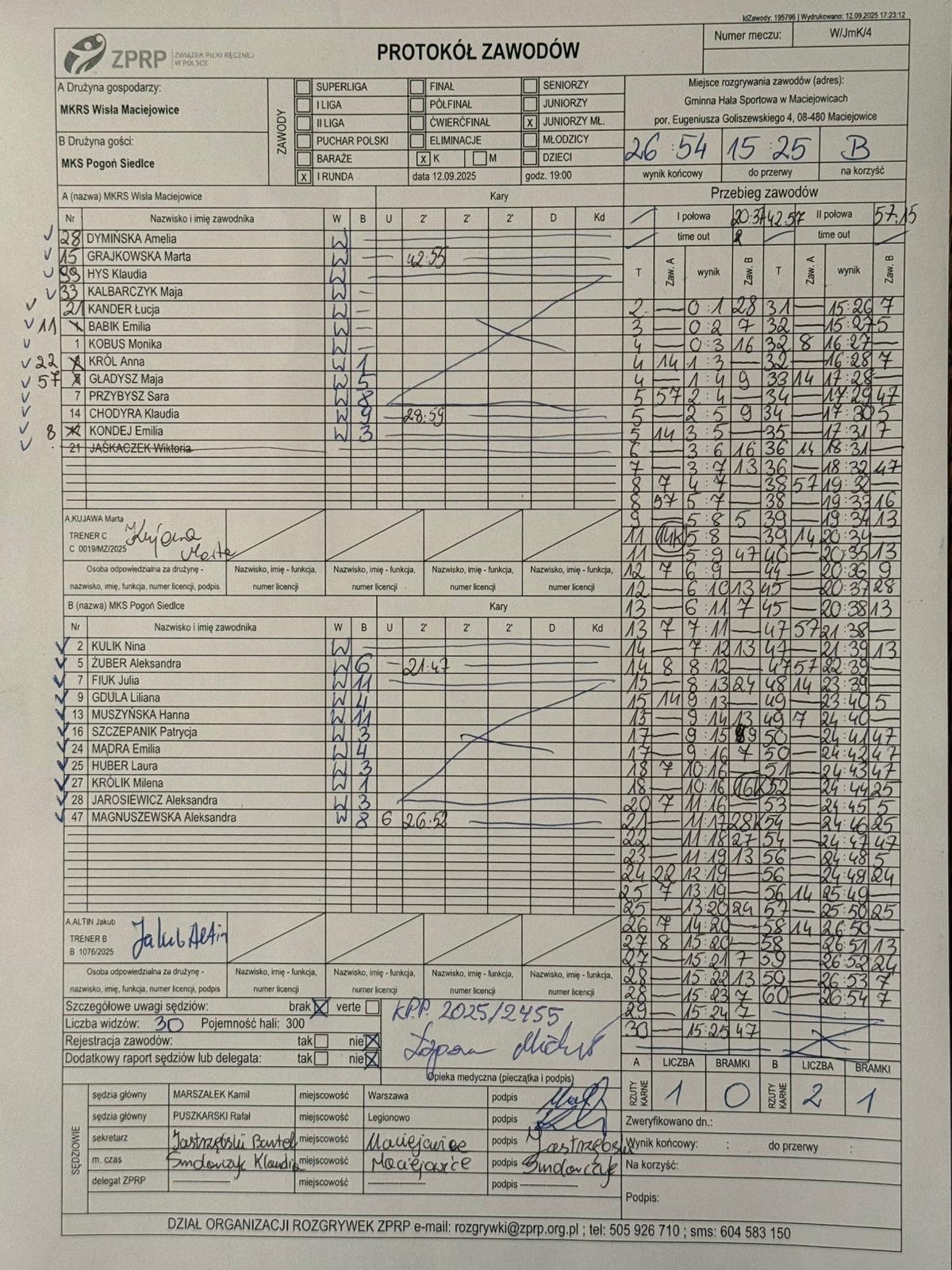 MKRS Wisła Maciejowice | Sędziowie: BIJAK Weronika PUSZKARSKI Rafał Delegat: |
