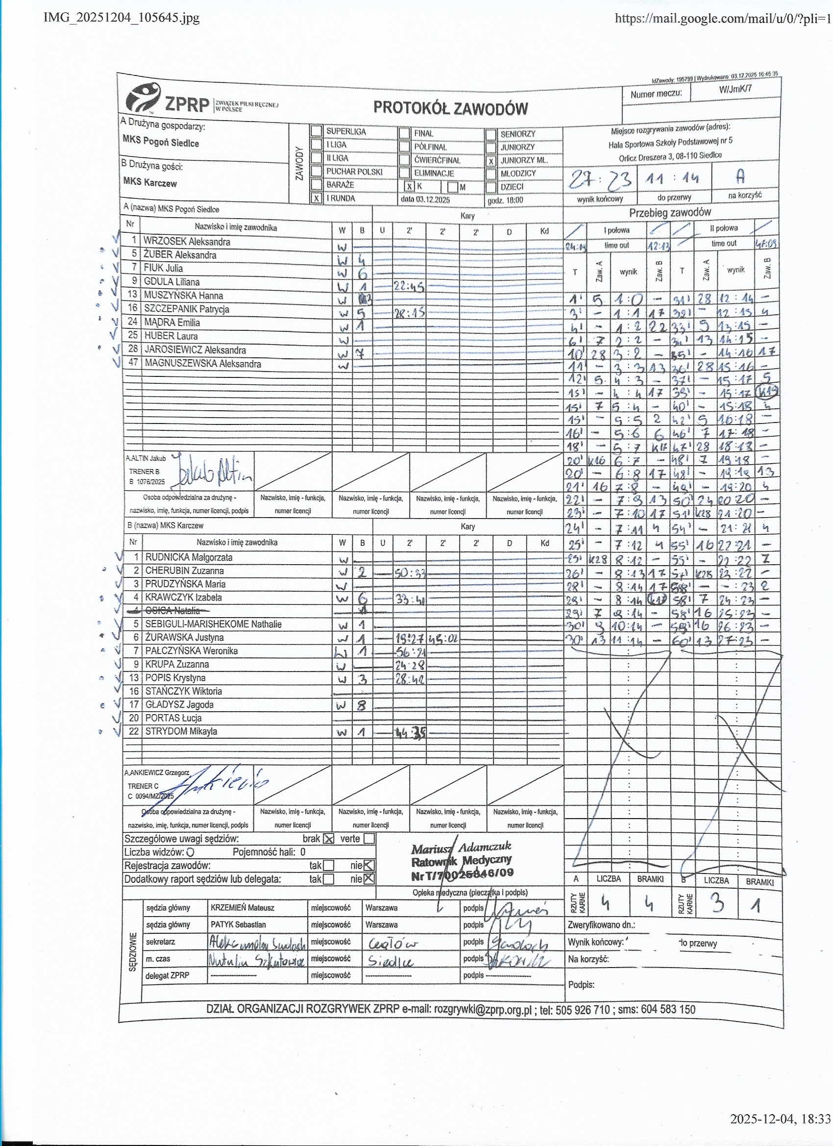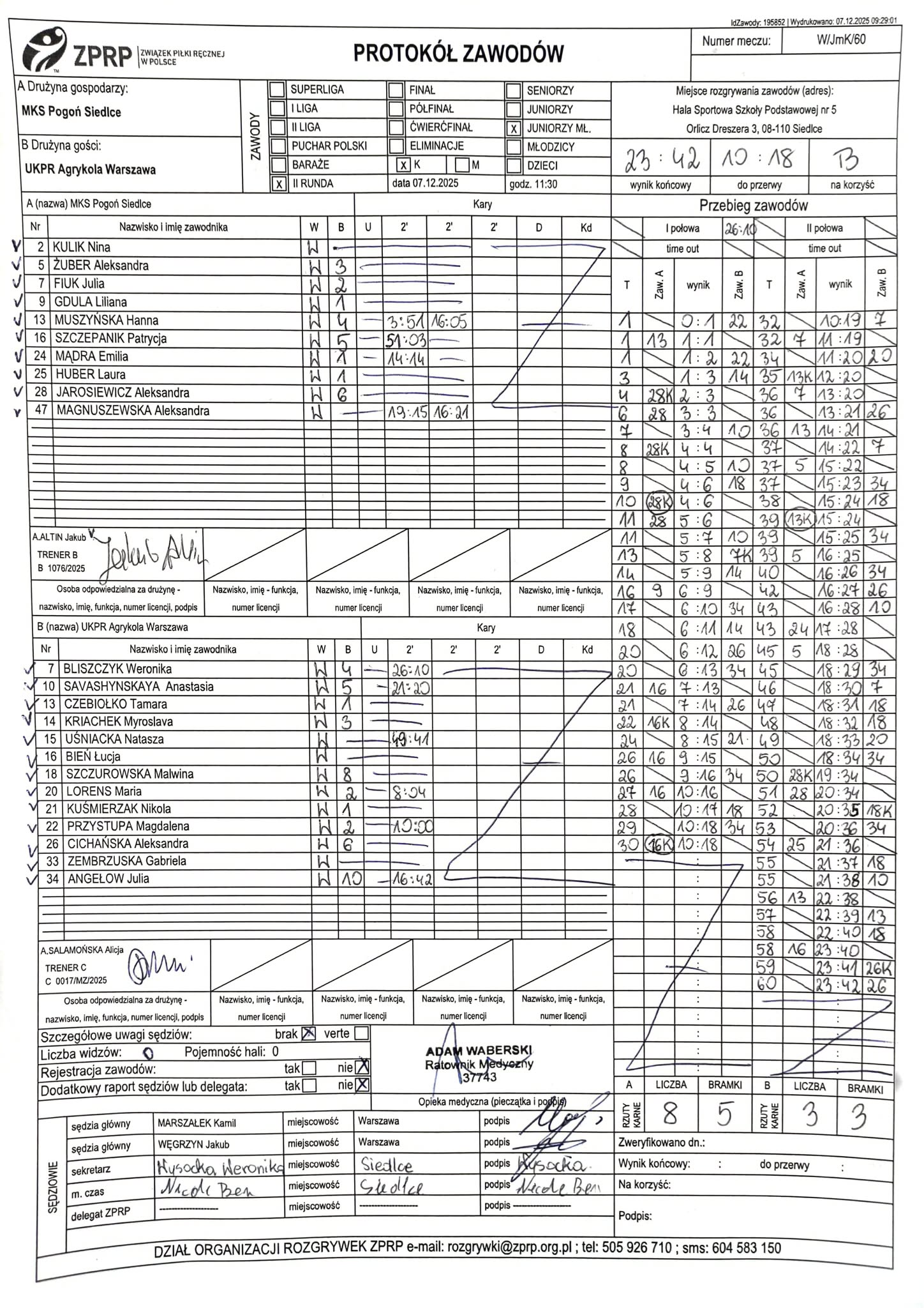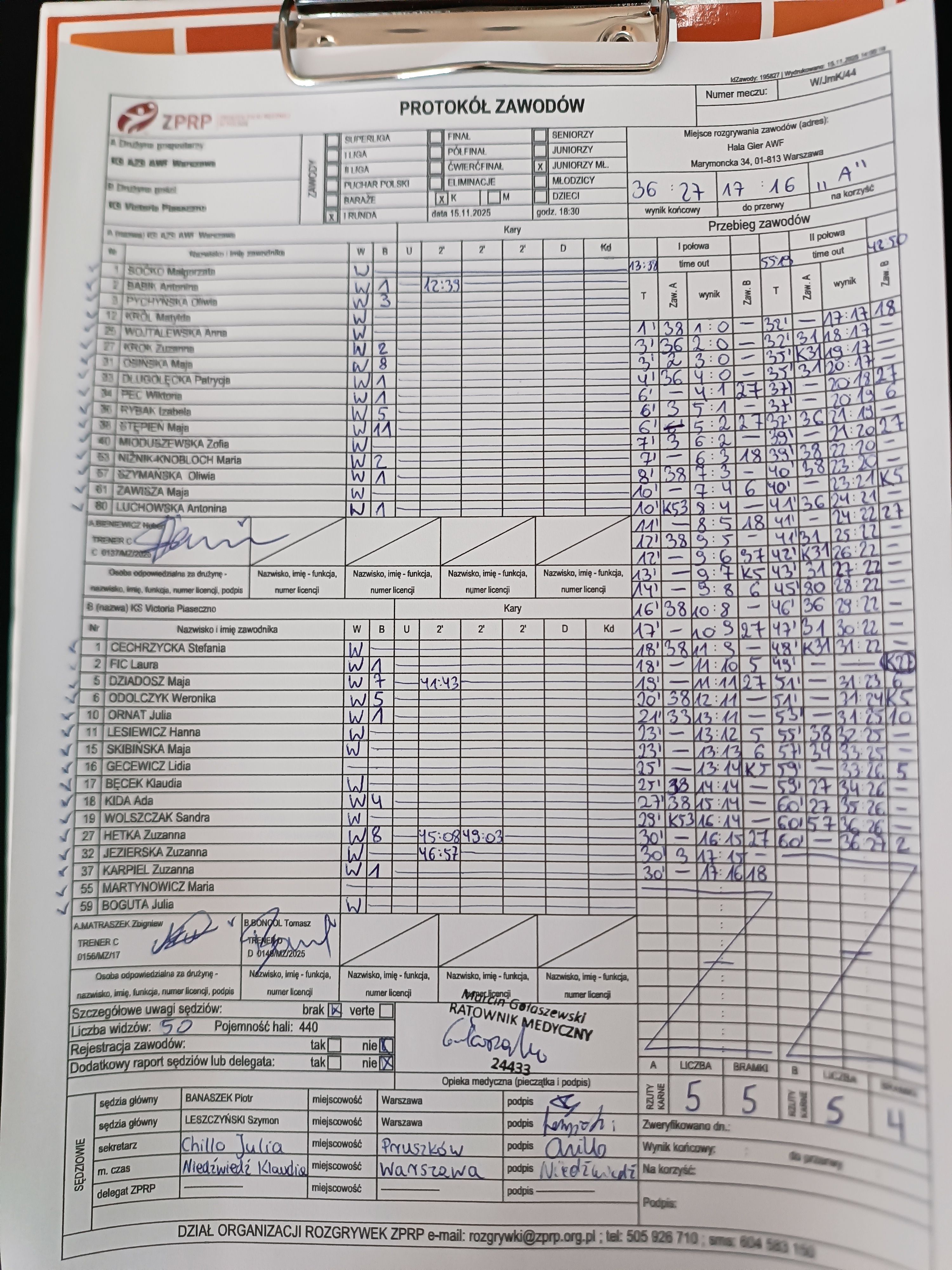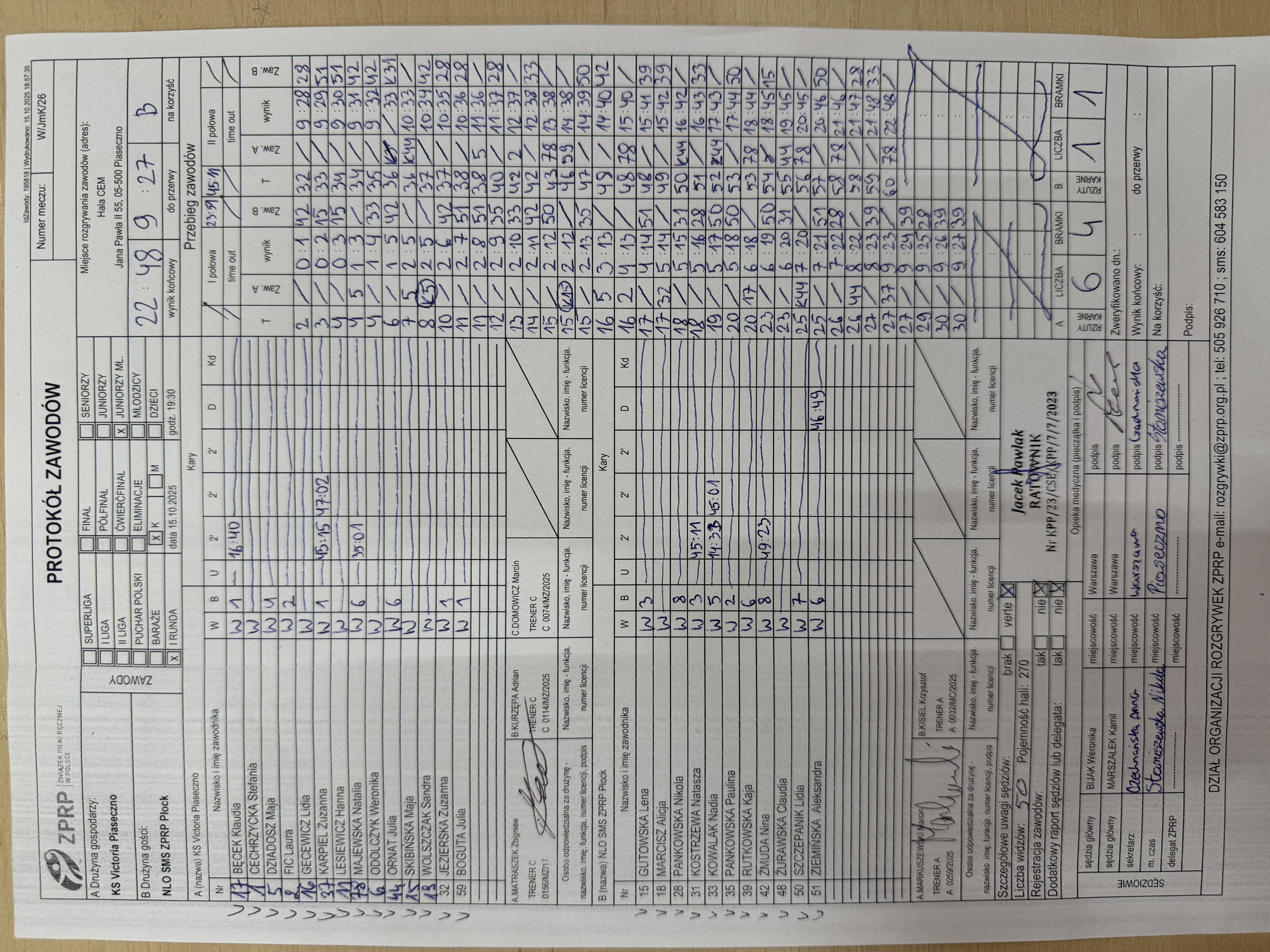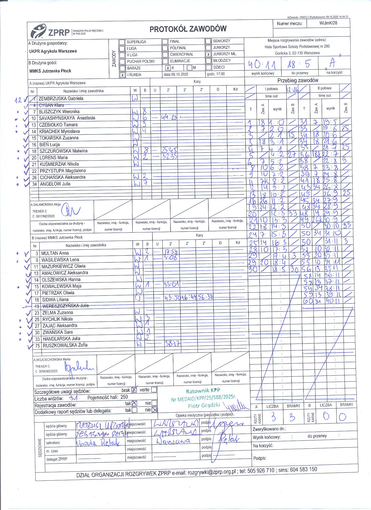 UKPR Agrykola Warszawa | Sędziowie: KRZEMIEŃ Mateusz PUSZKARSKI Rafał Delegat: |