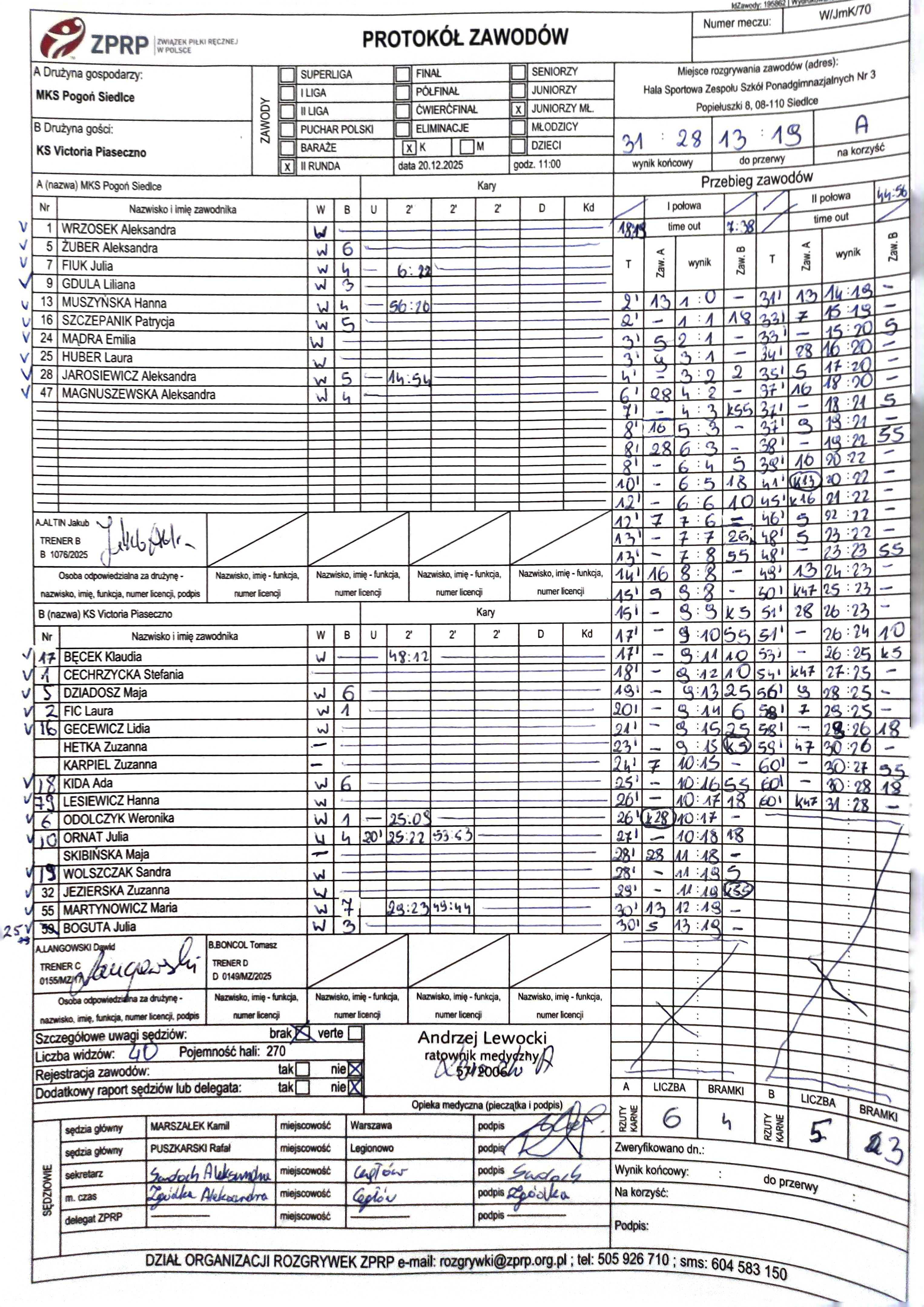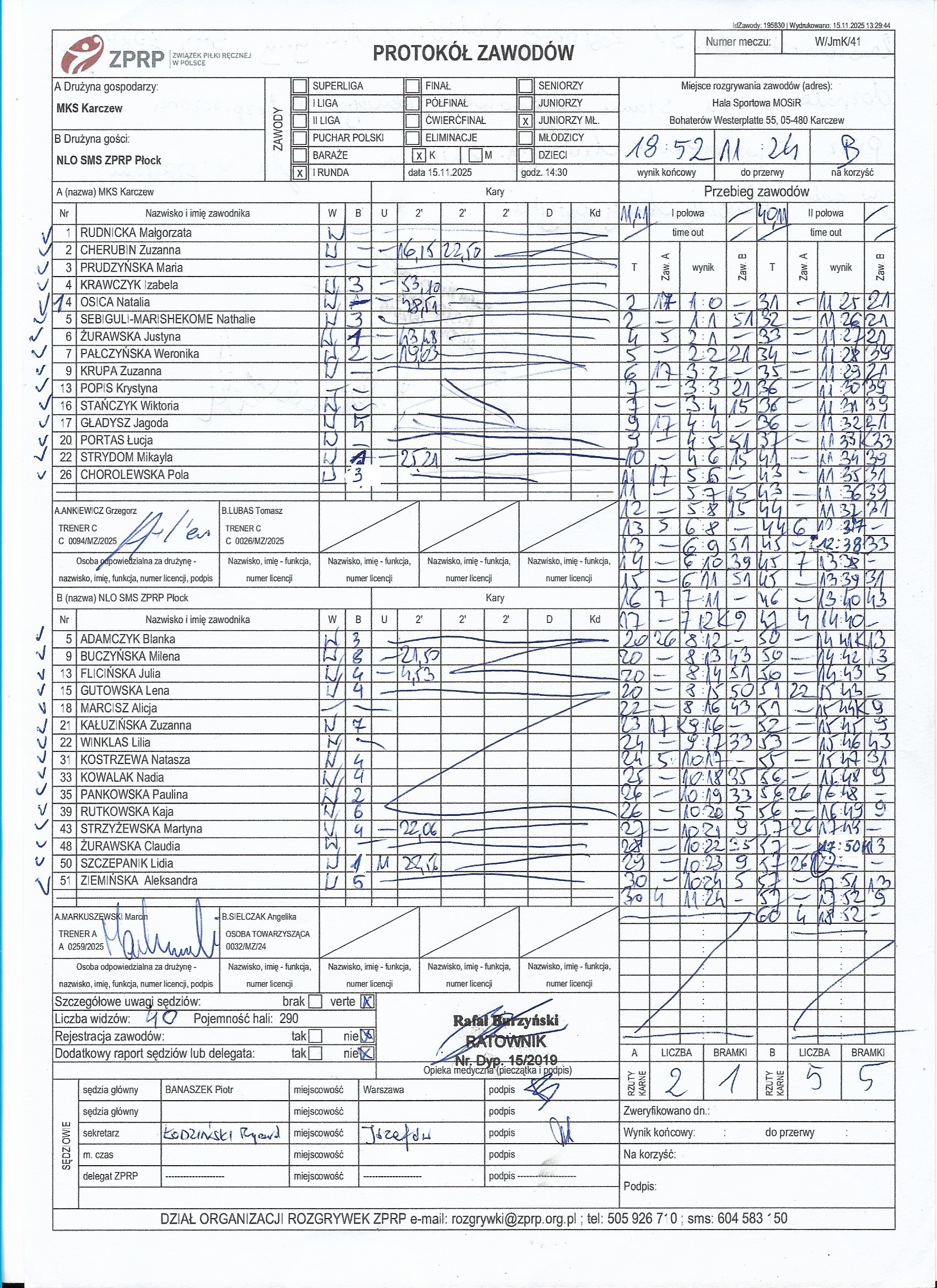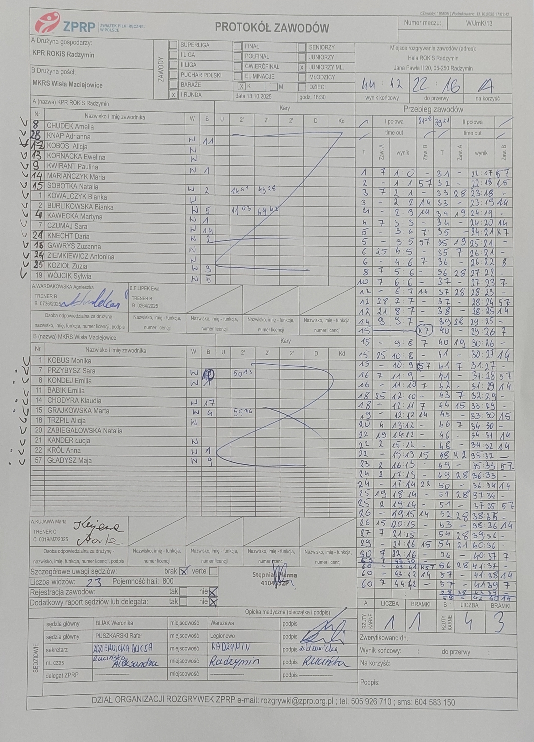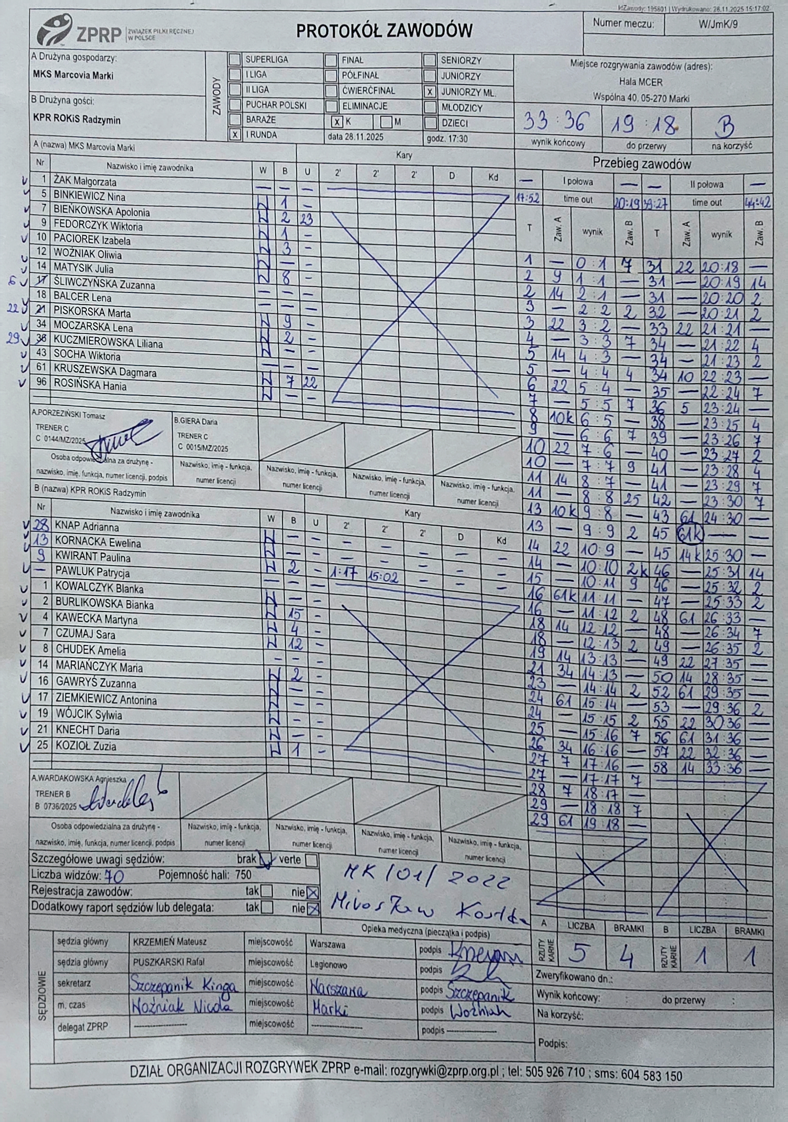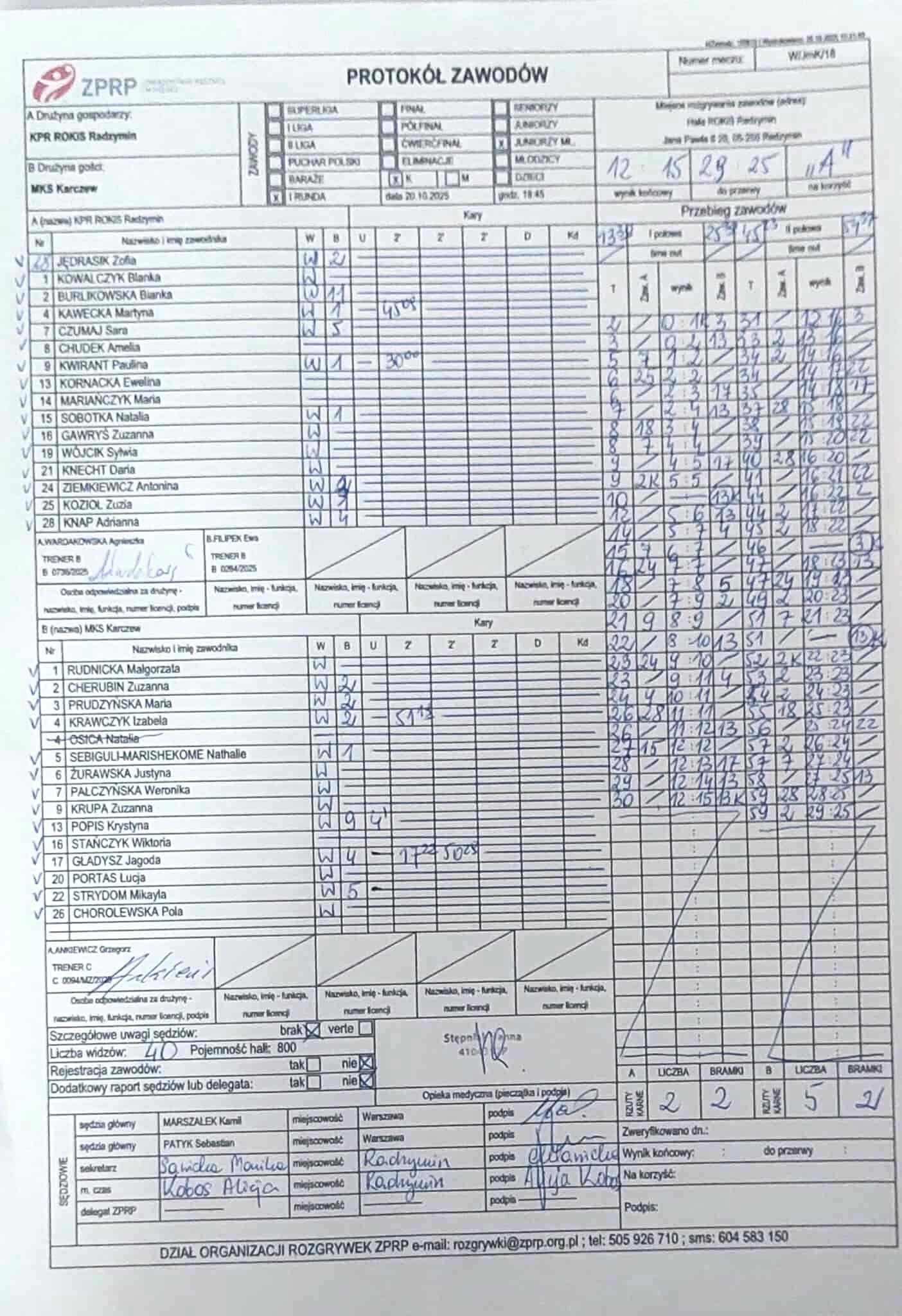 KPR ROKiS Radzymin | Sędziowie: OLSZEWSKI Marcin — — Delegat: |
