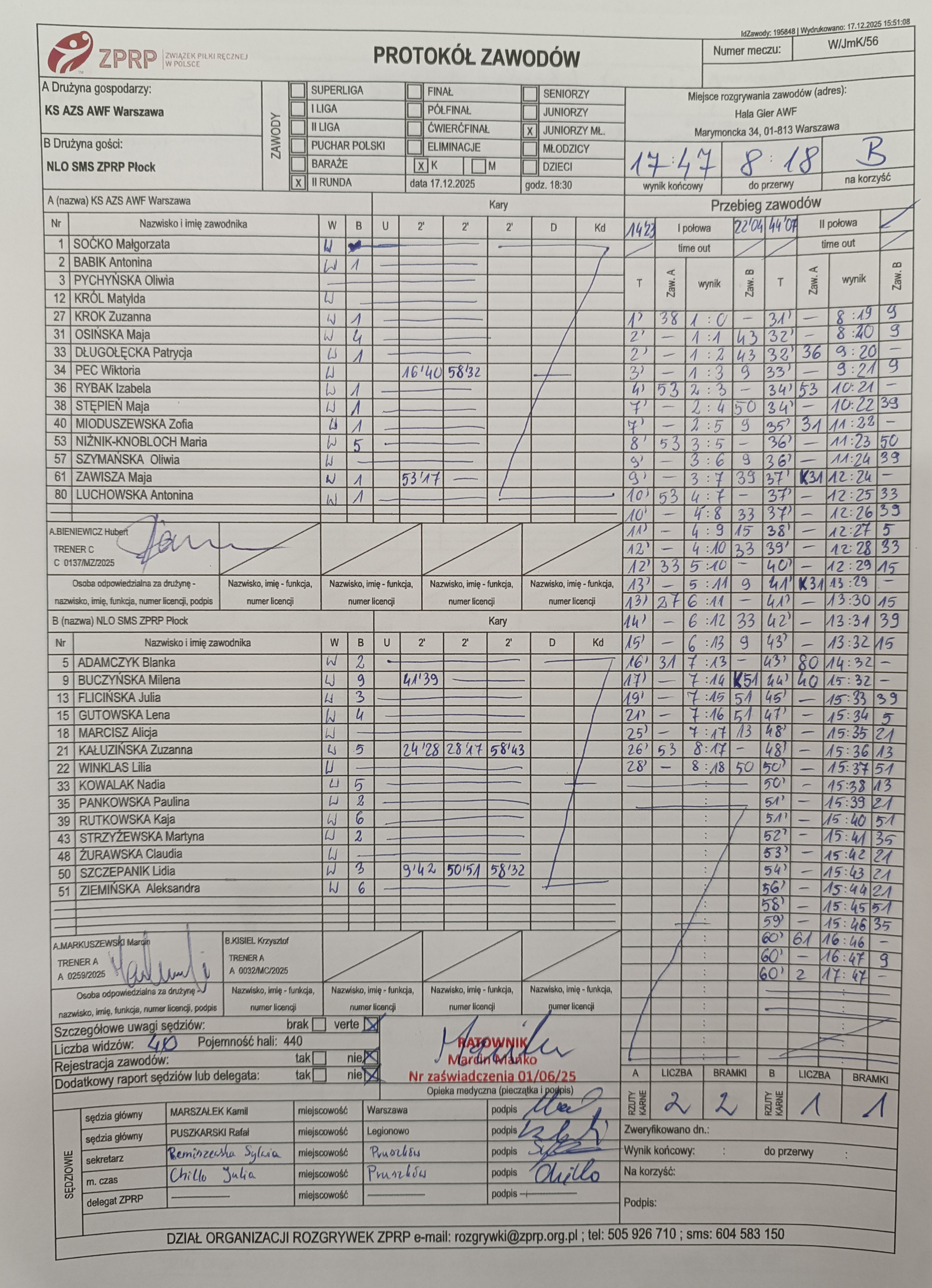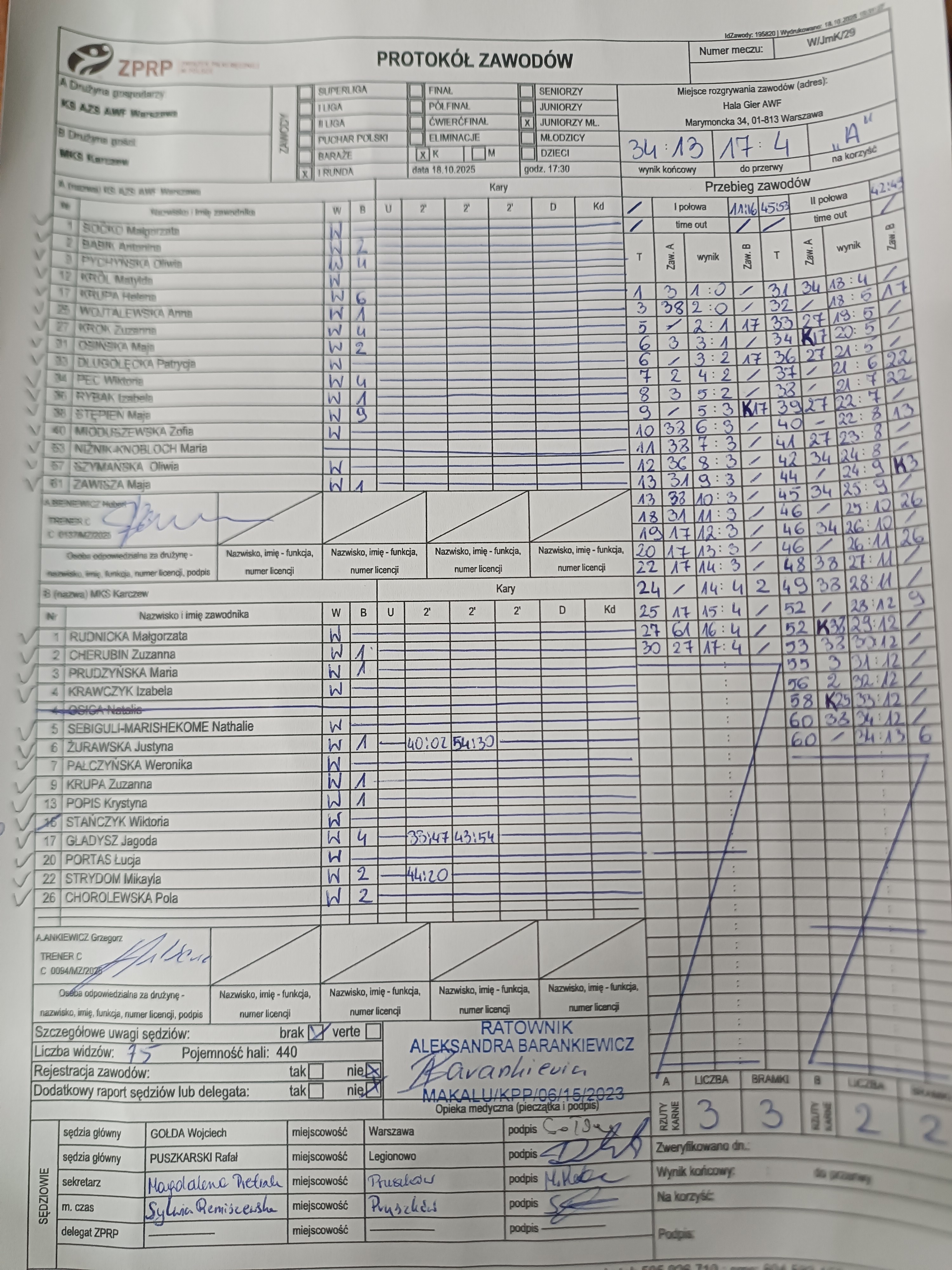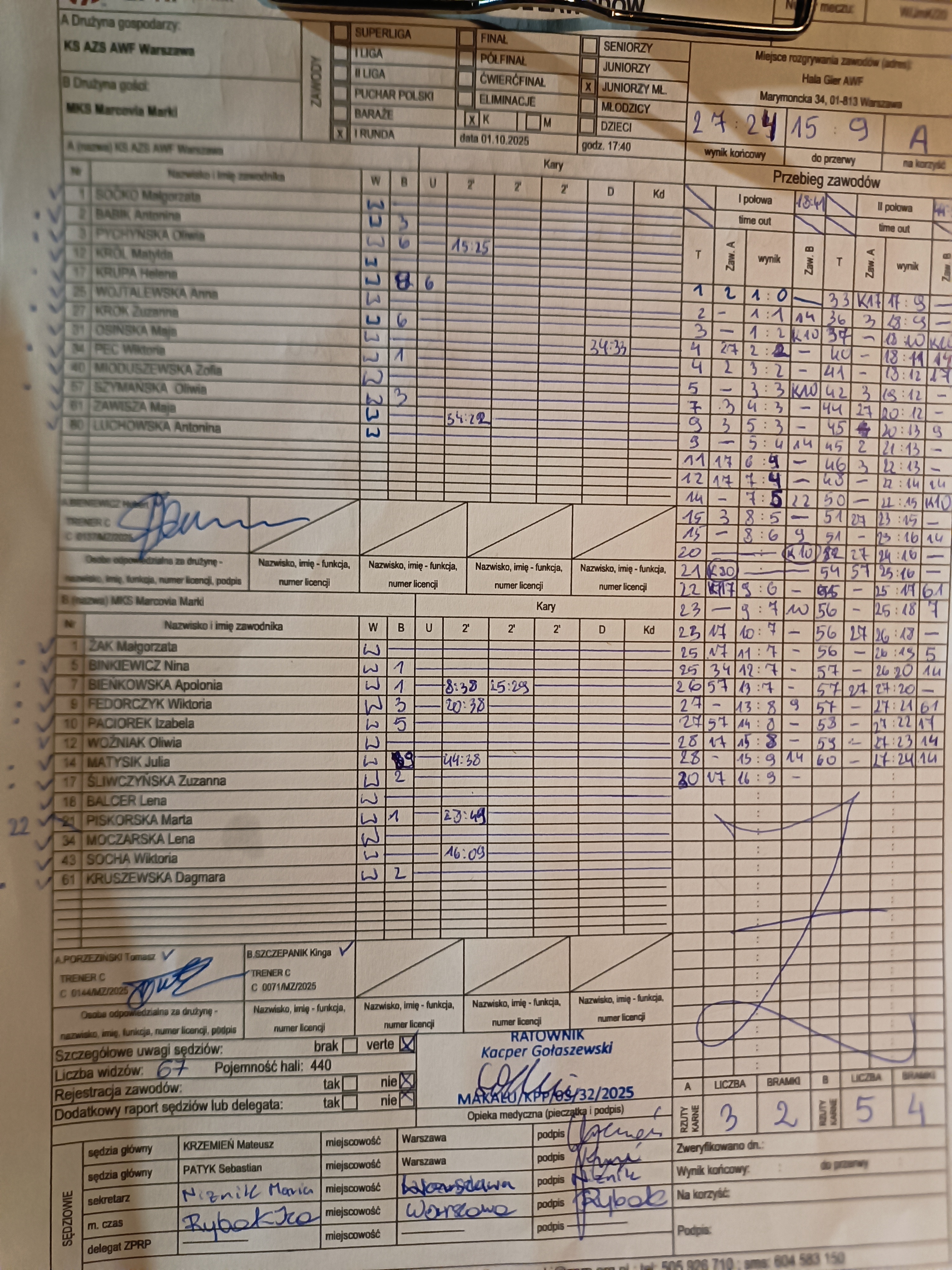 KS AZS AWF Warszawa | Sędziowie: KARAŚ Jakub LESZCZYŃSKI Szymon Delegat: |