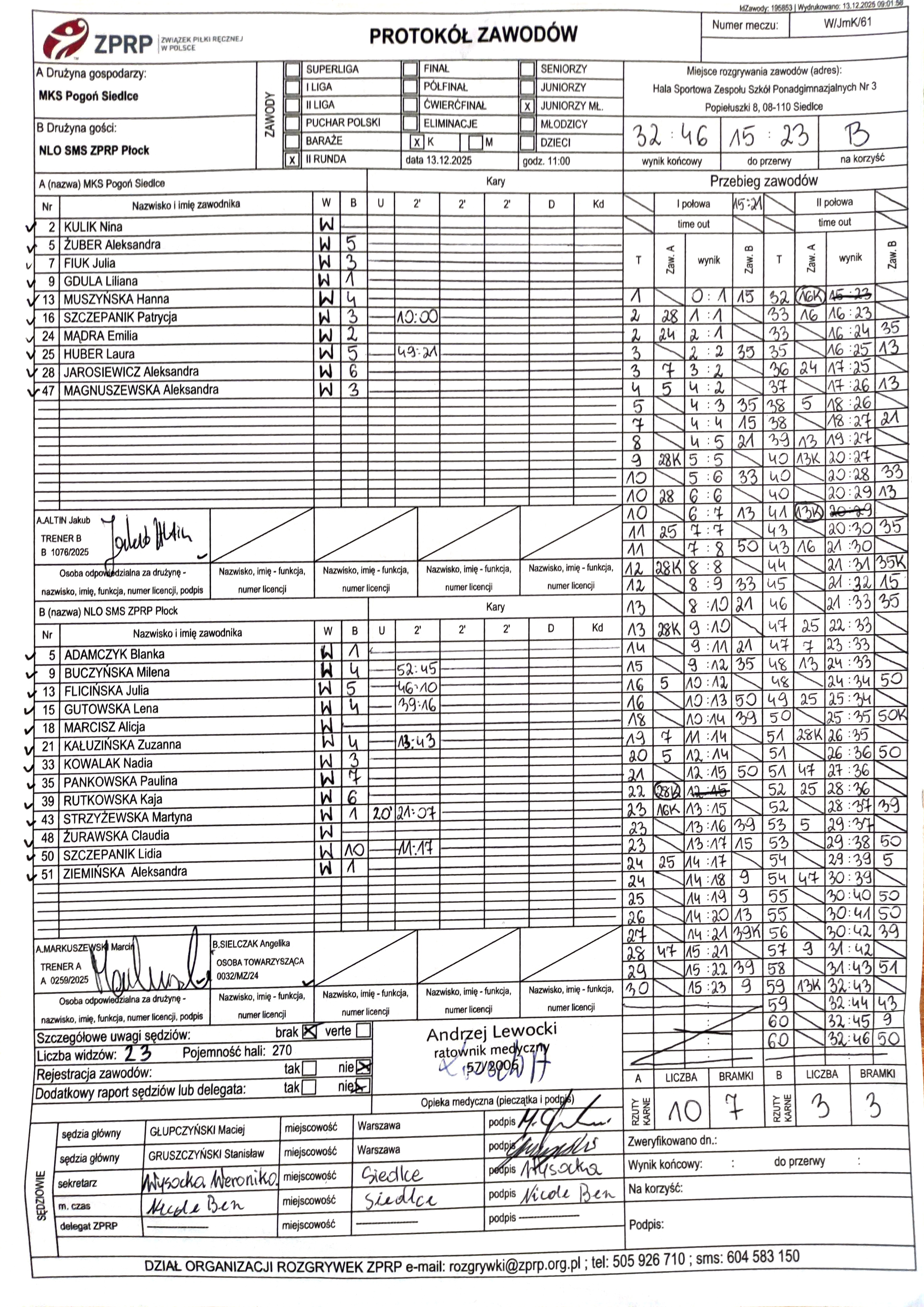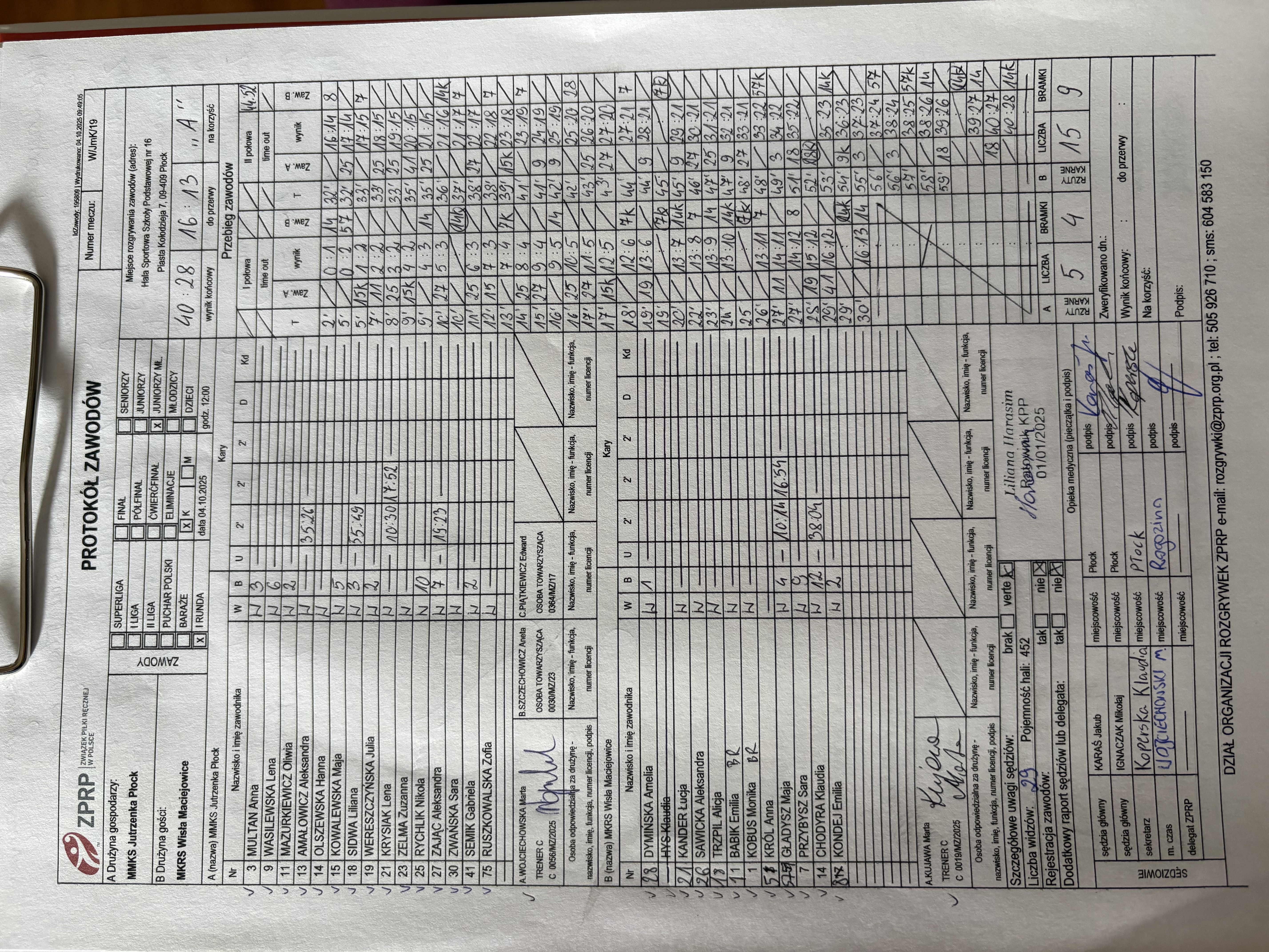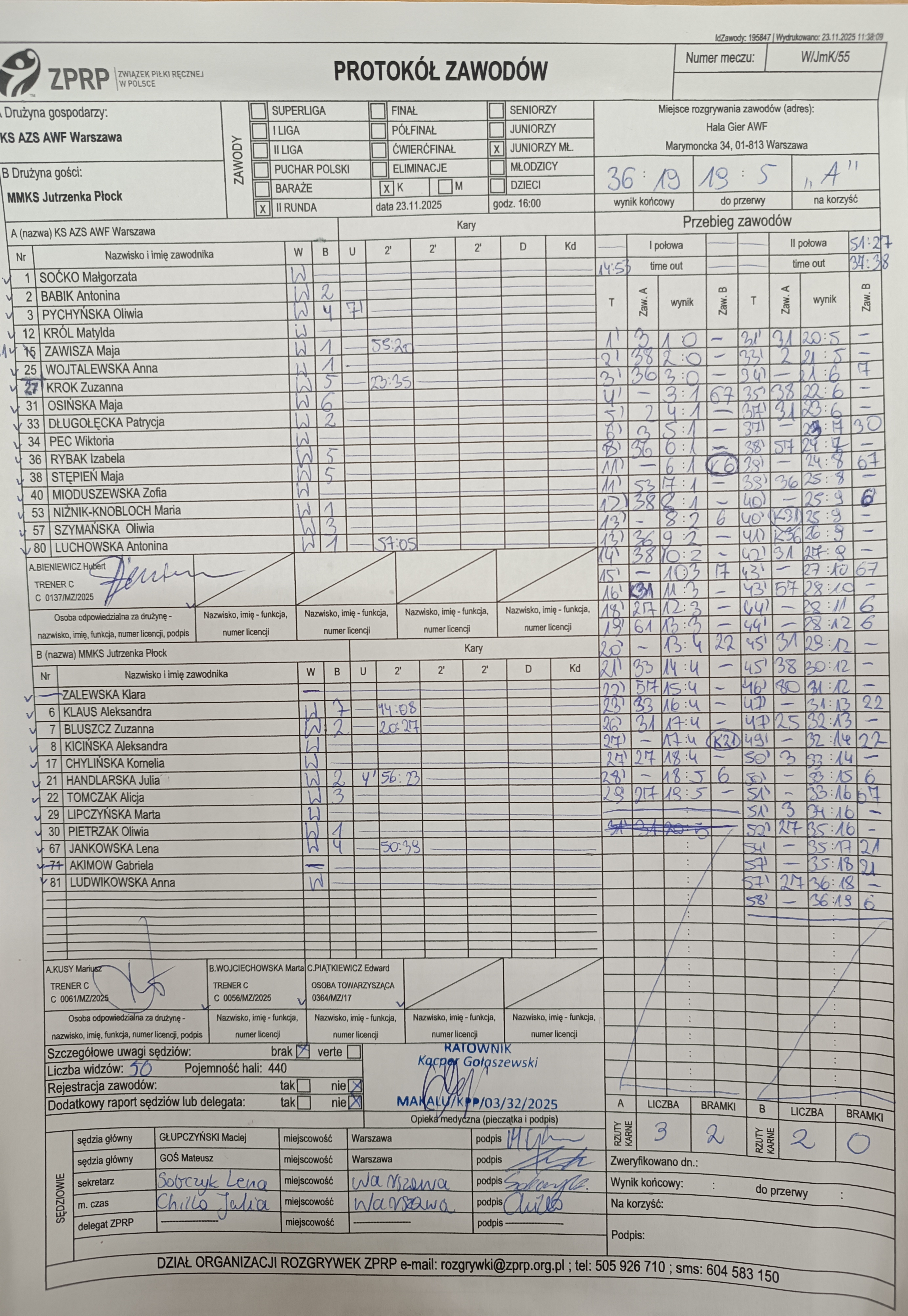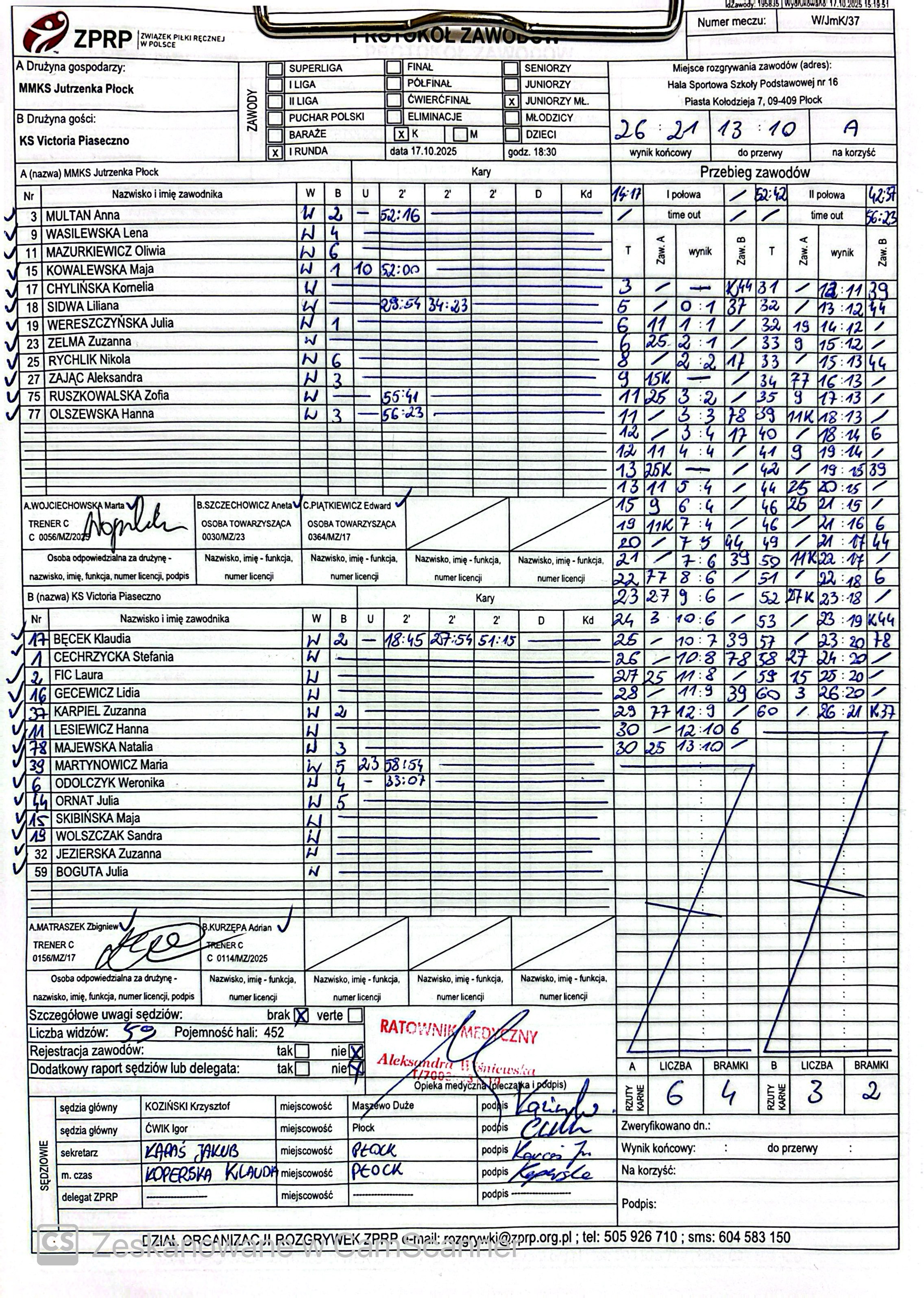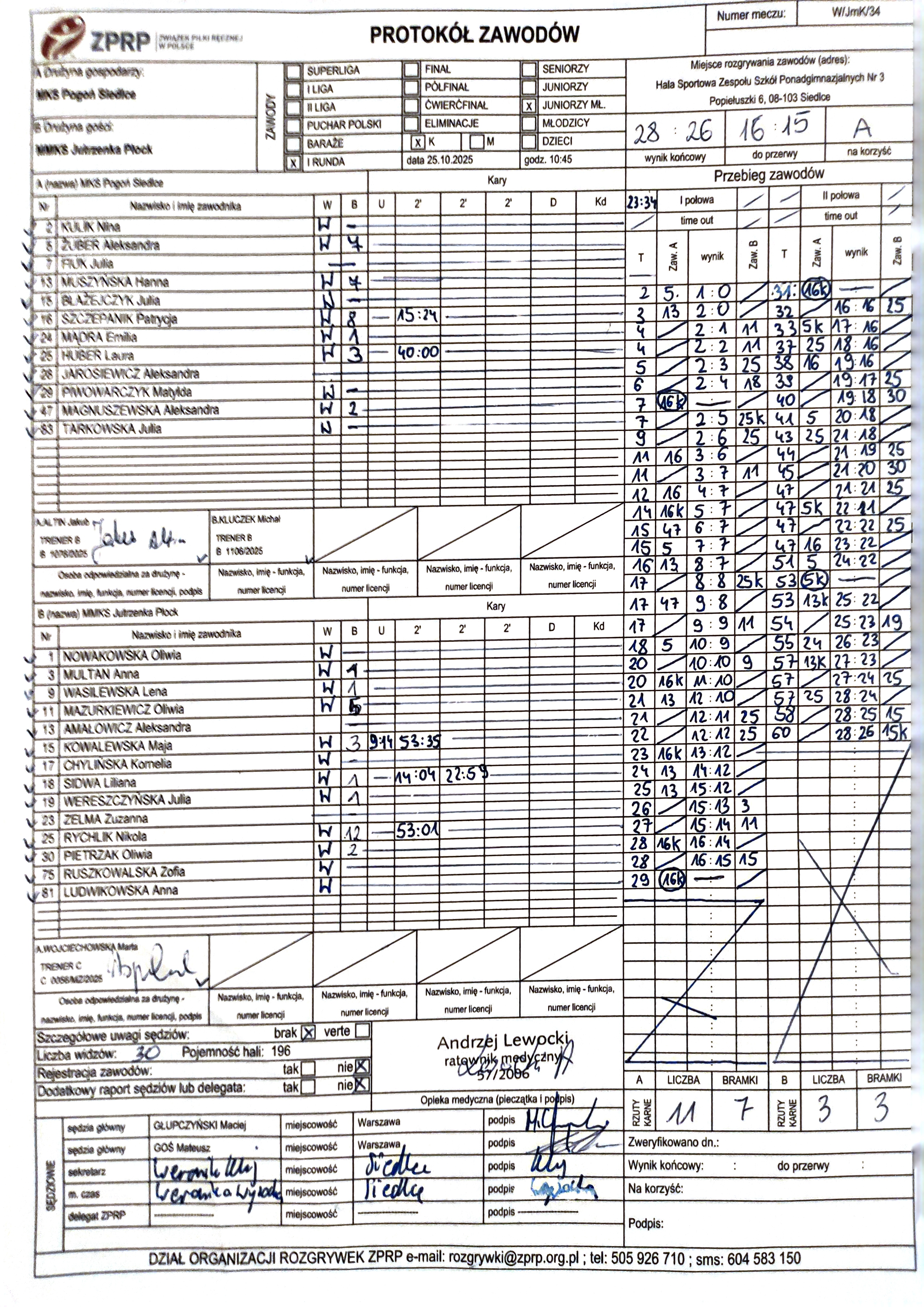 MMKS Jutrzenka Płock | Sędziowie: KRZEMIEŃ Mateusz PATYK Sebastian Delegat: |