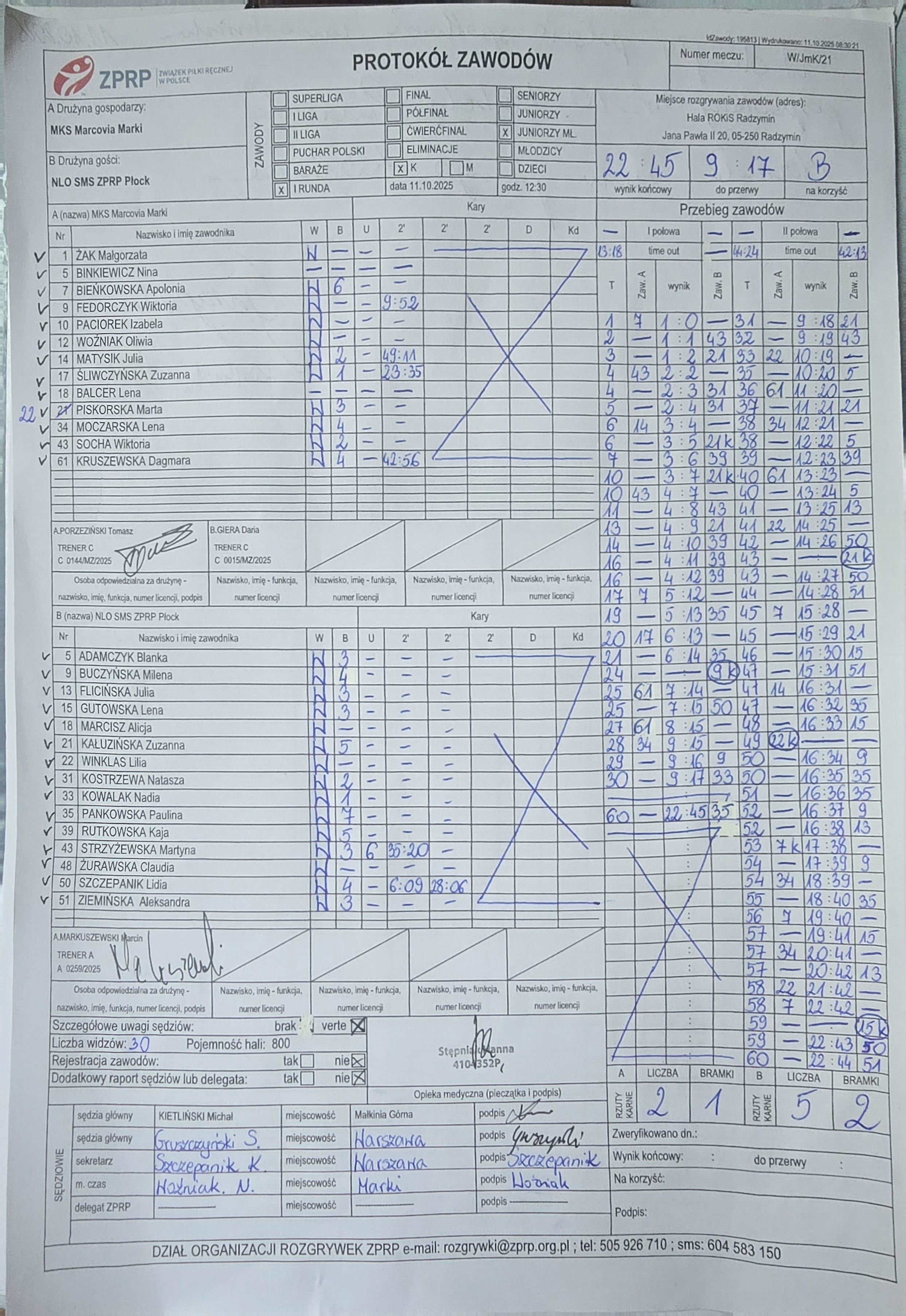 | 21 | 2025-10-11 12:30:00 | MKS Marcovia Marki | NLO SMS ZPRP Płock | Sędziowie: KIETLIŃSKI Michał — — Delegat: |