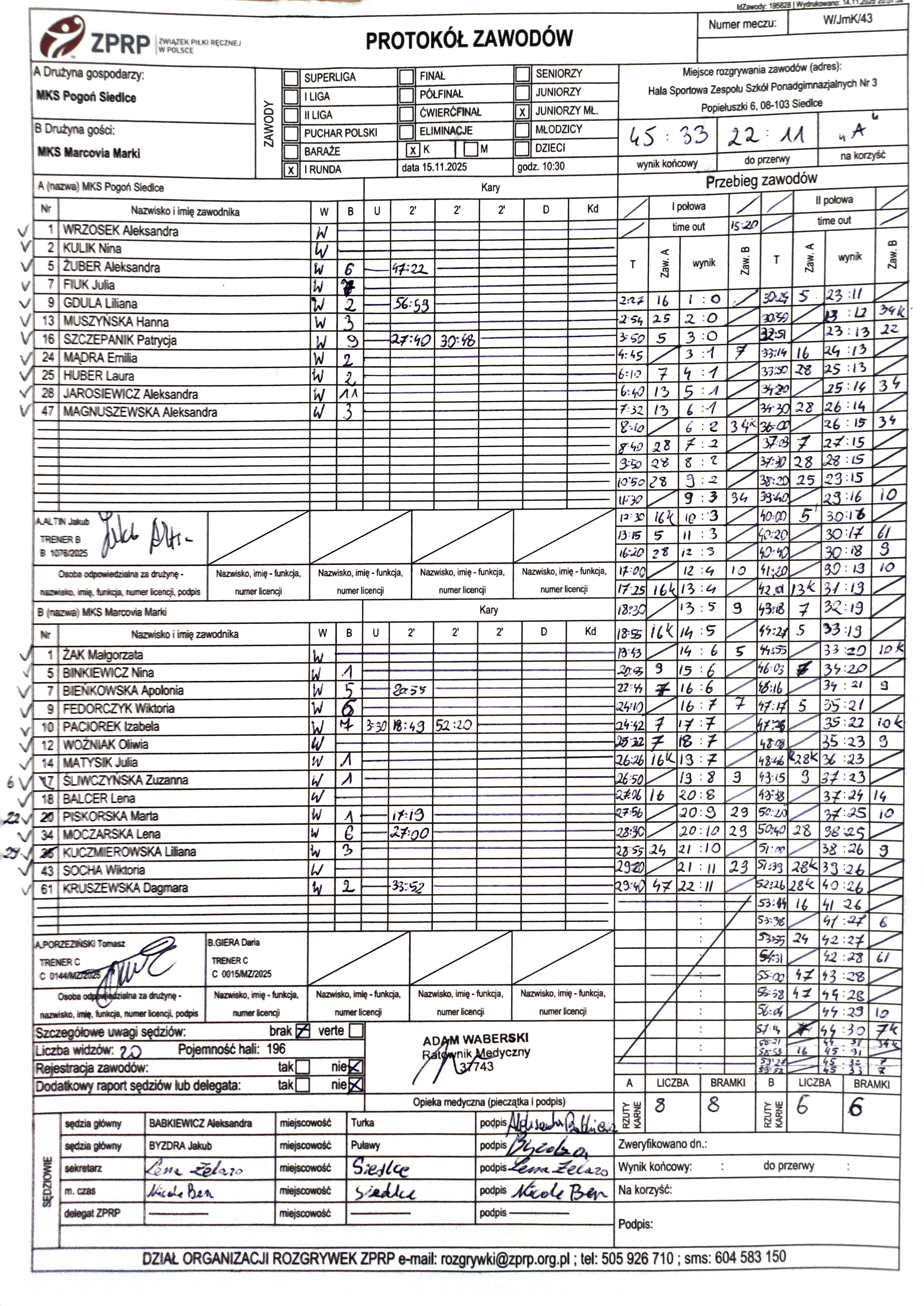 MKS Marcovia Marki | Sędziowie: MARZĘDA Kacper KRZEMIEŃ Mateusz Delegat: |