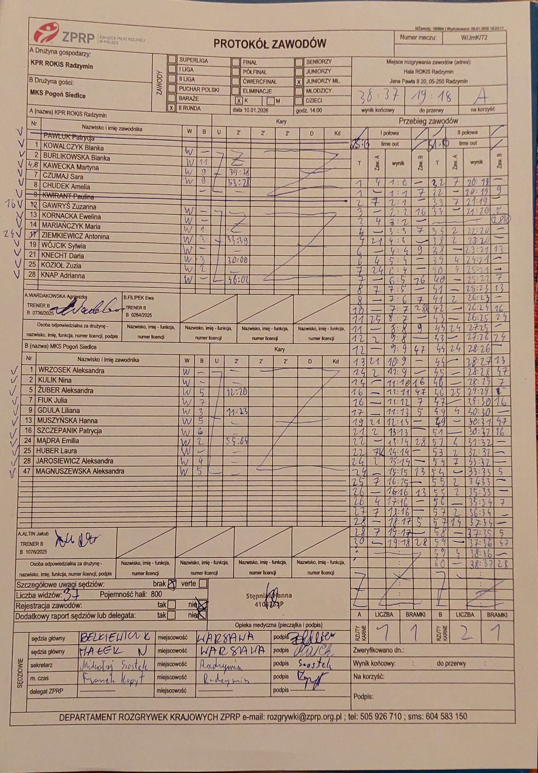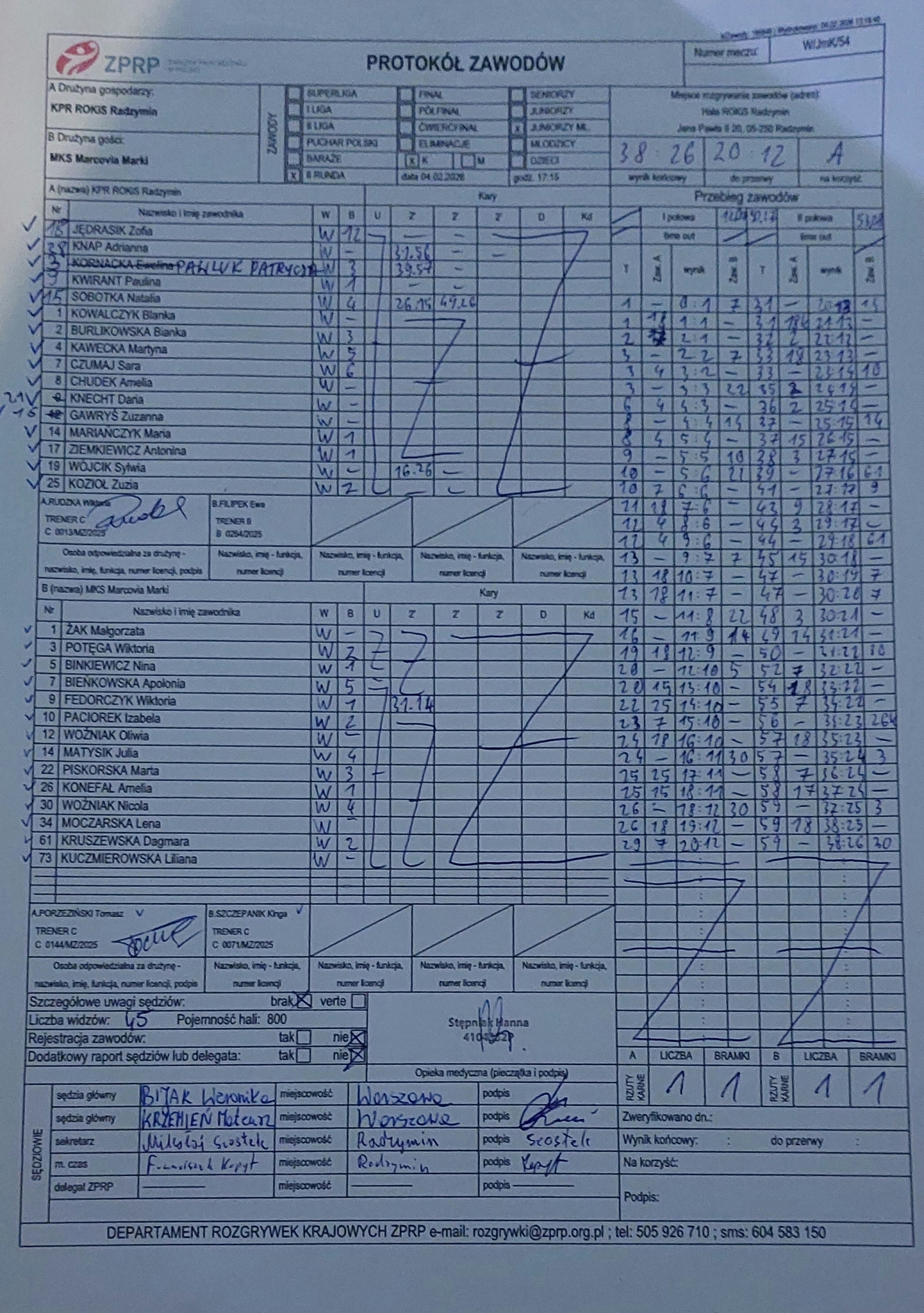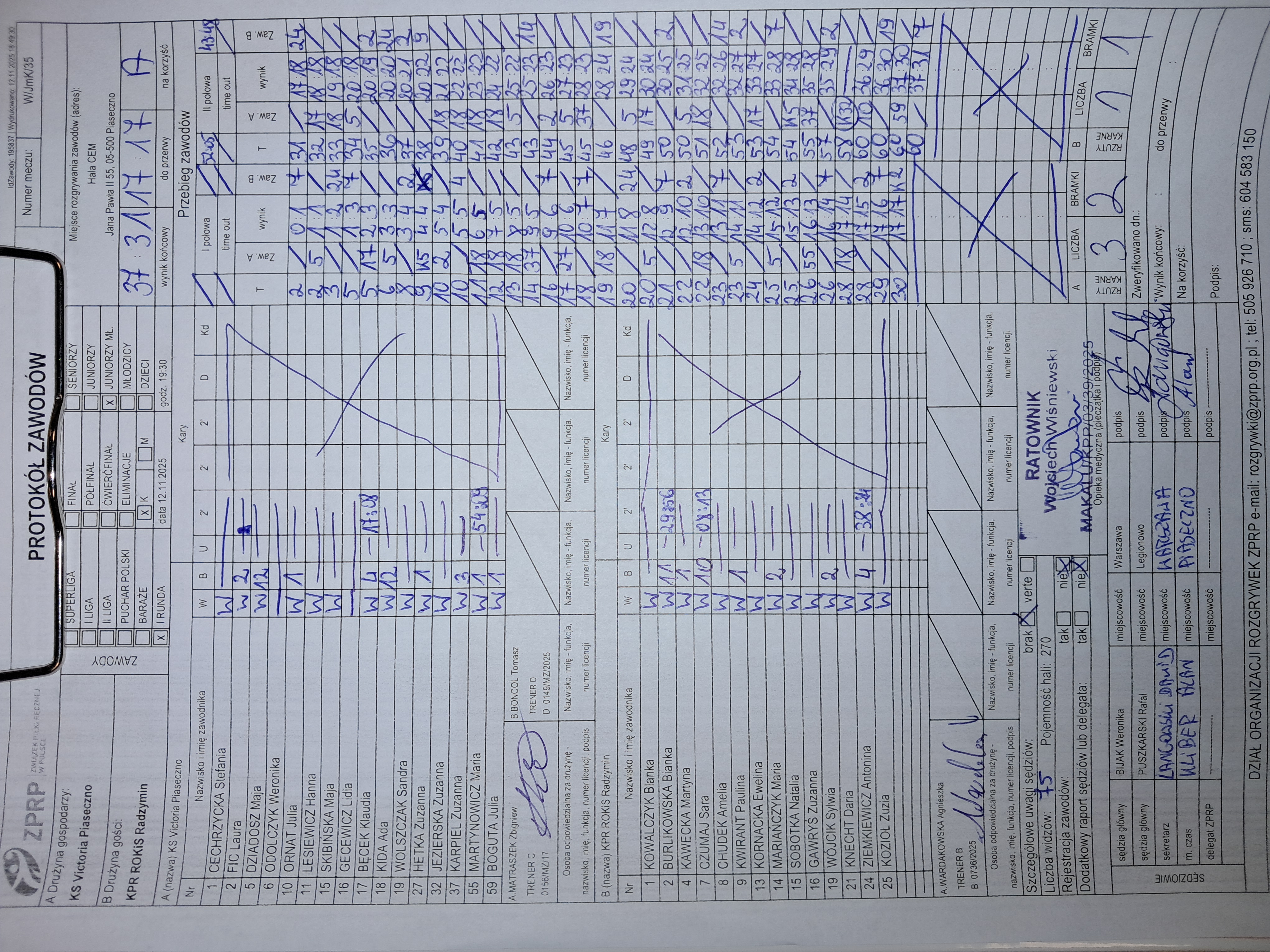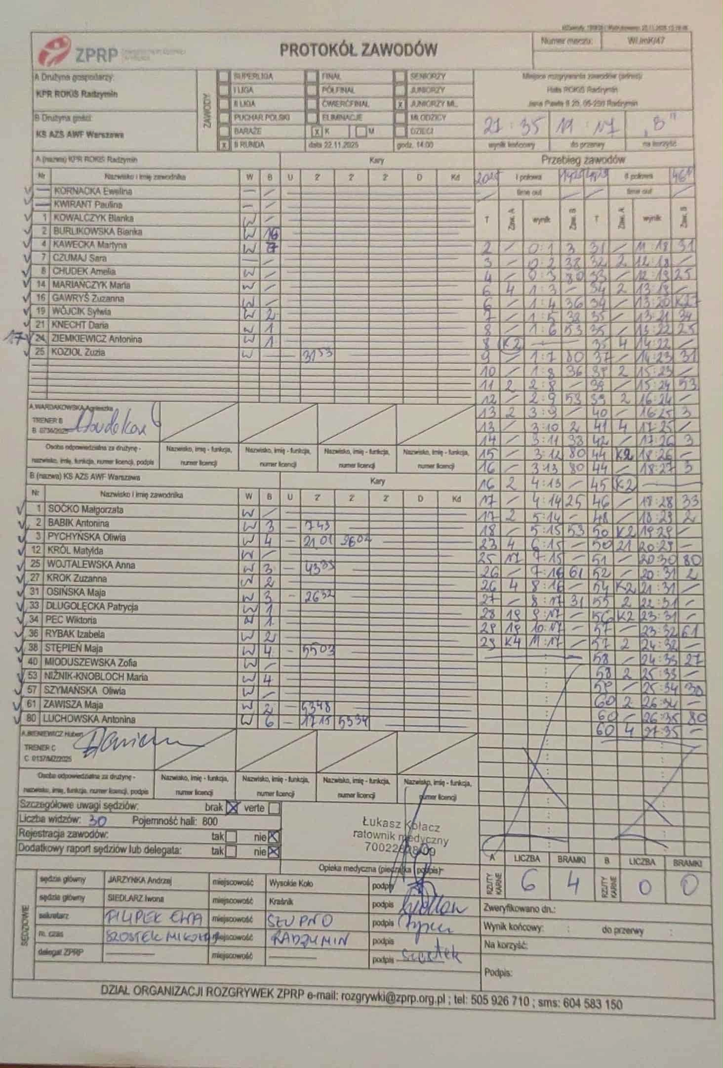 KPR ROKiS Radzymin | Sędziowie: KRZEMIEŃ Mateusz PUSZKARSKI Rafał Delegat: |