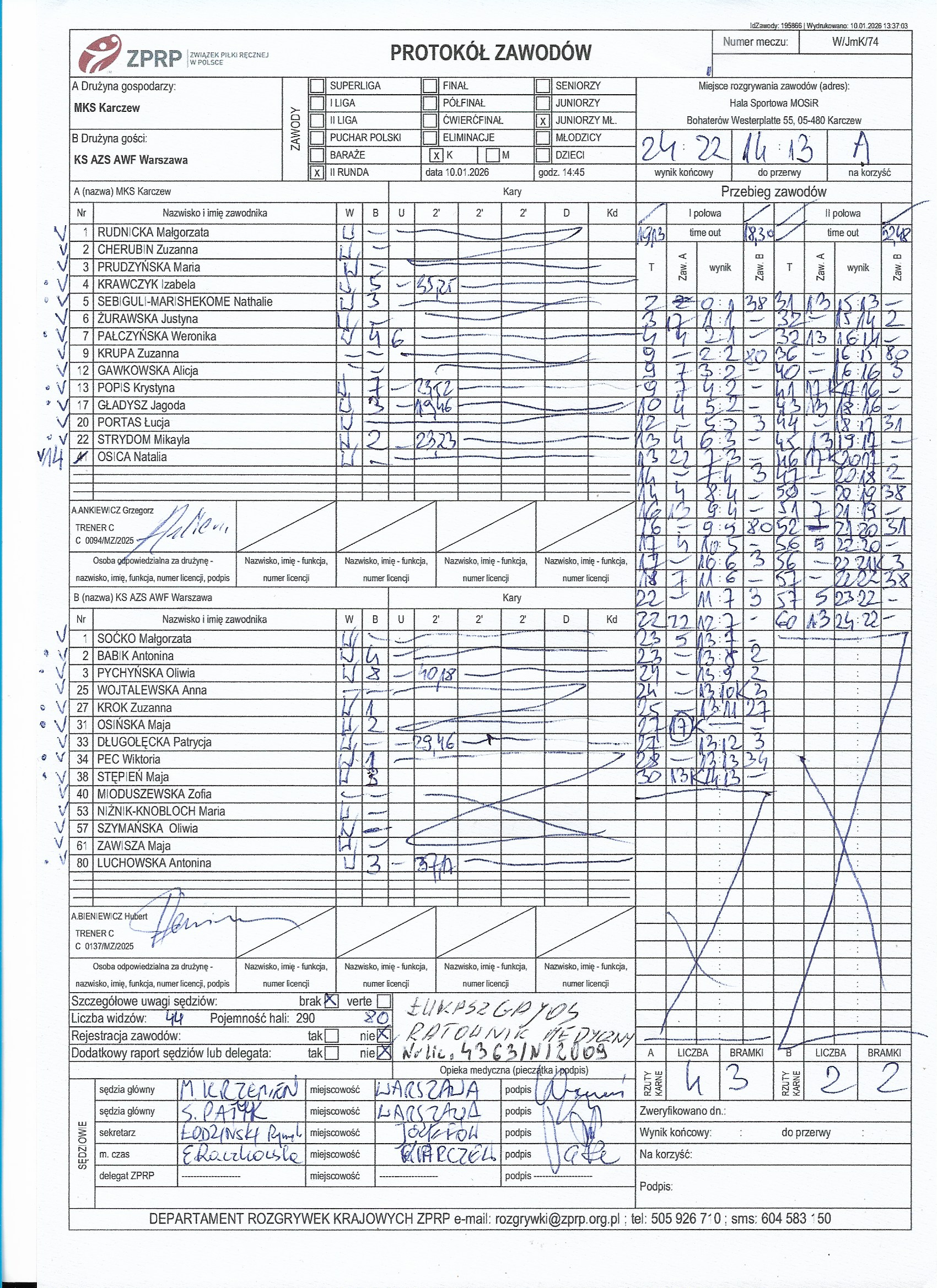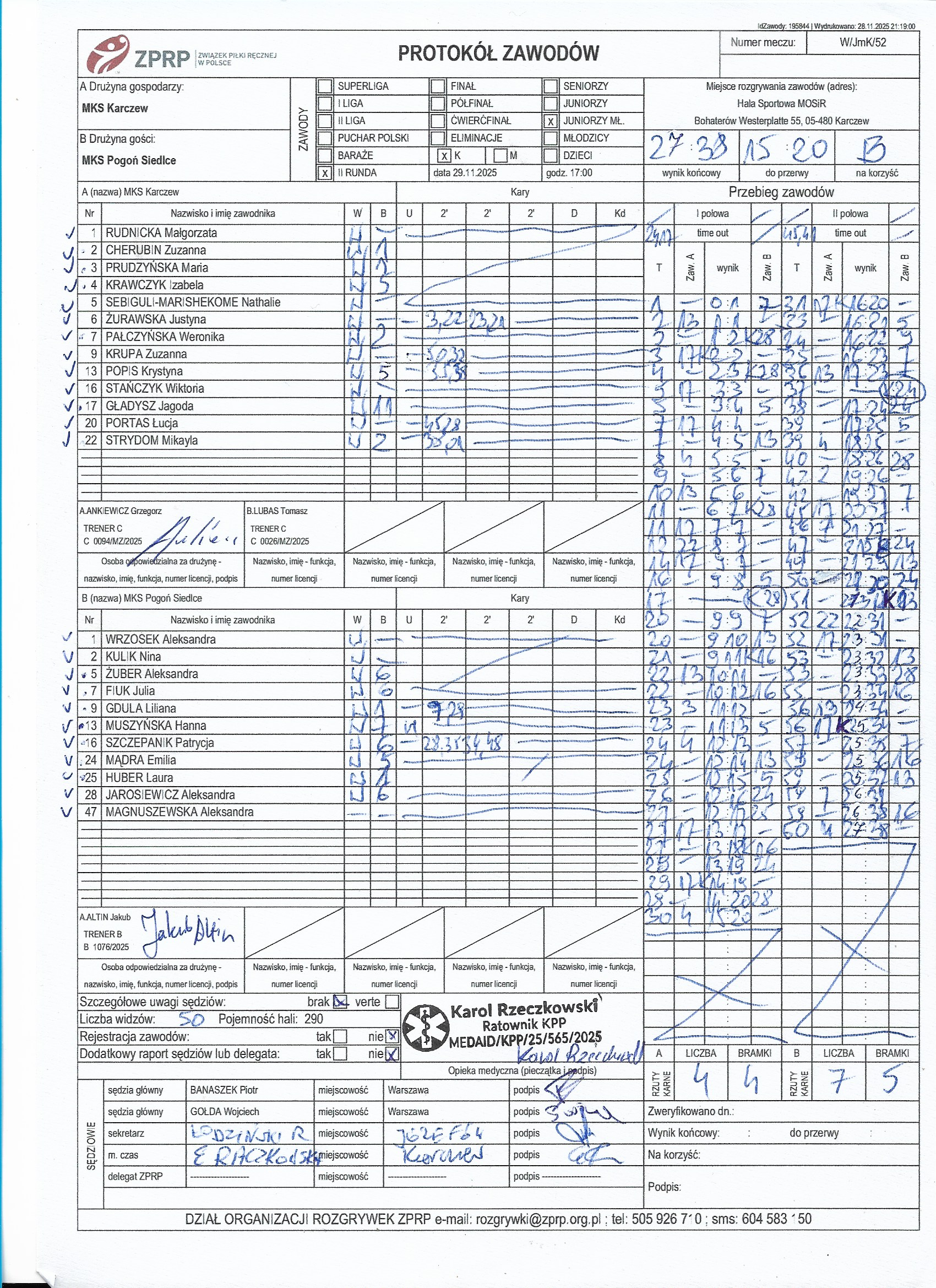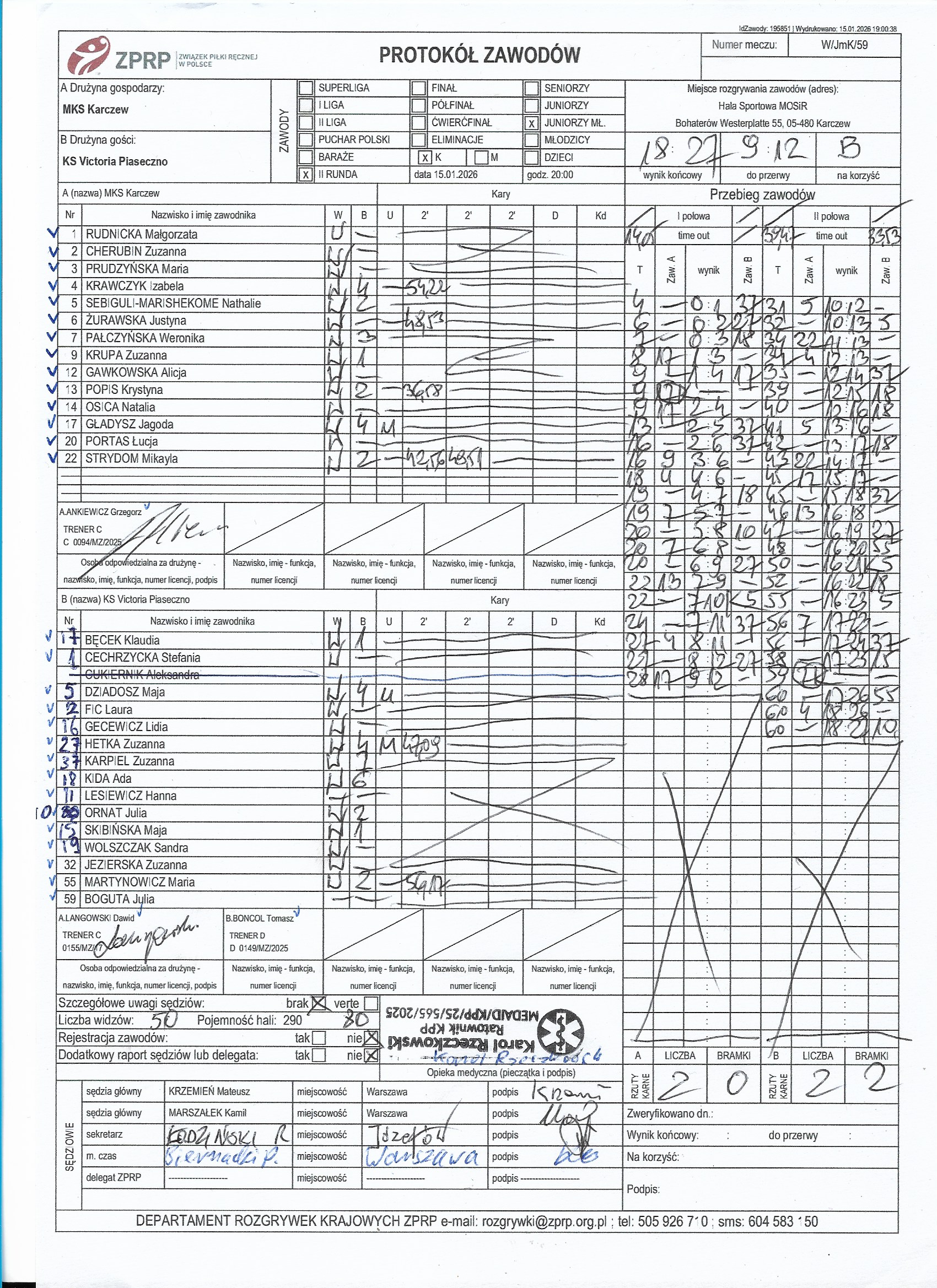 MKS Karczew | Sędziowie: GRUSZCZYŃSKI Stanisław WIŚNIEWSKI Marcin Delegat: |