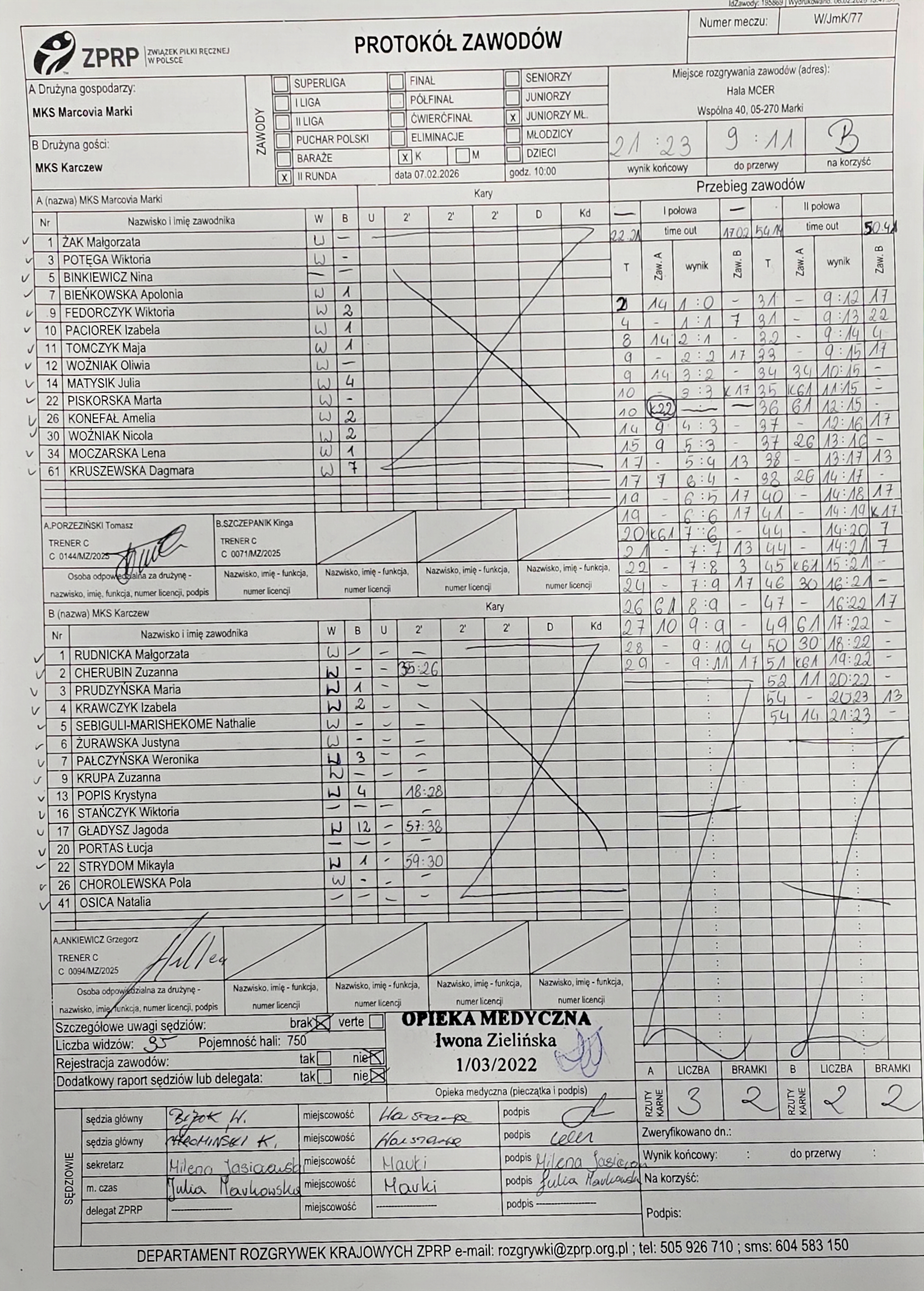 MKS Marcovia Marki | Sędziowie: GOŚ Mateusz KRZEMIEŃ Mateusz Delegat: |