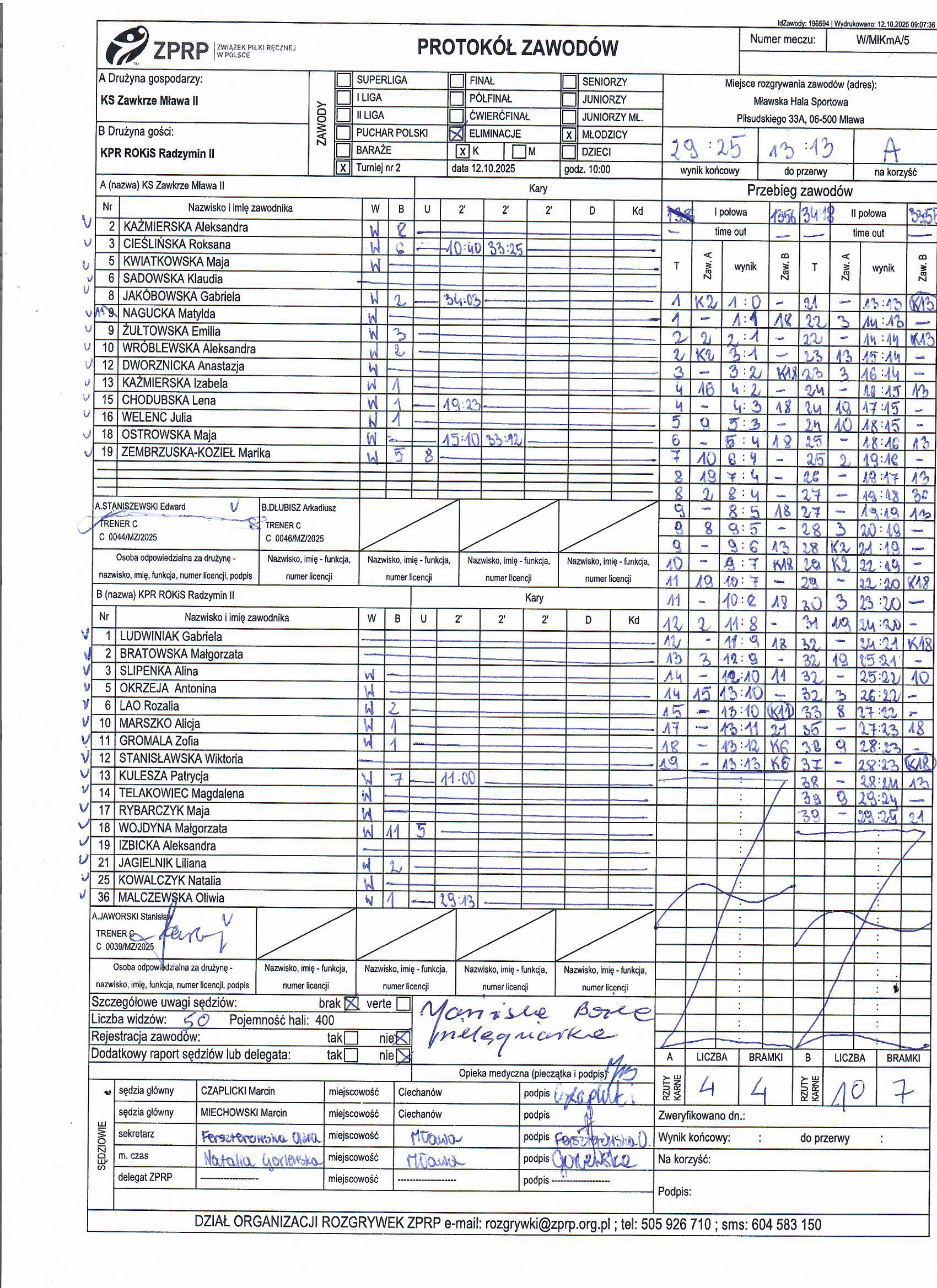 | 7 | 2025-10-12 12:30:00 | KS Zawkrze Mława II | SKF ORLEN Wisła Płock | Sędziowie: CZAPLICKI Marcin MIECHOWSKI Marcin Delegat: |