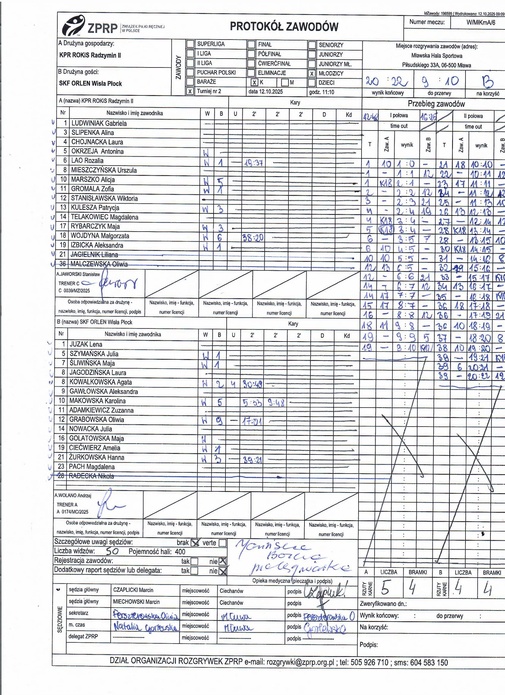 | 6 | 2025-10-12 11:10:00 | KPR ROKiS Radzymin II | SKF ORLEN Wisła Płock | Sędziowie: CZAPLICKI Marcin MIECHOWSKI Marcin Delegat: |