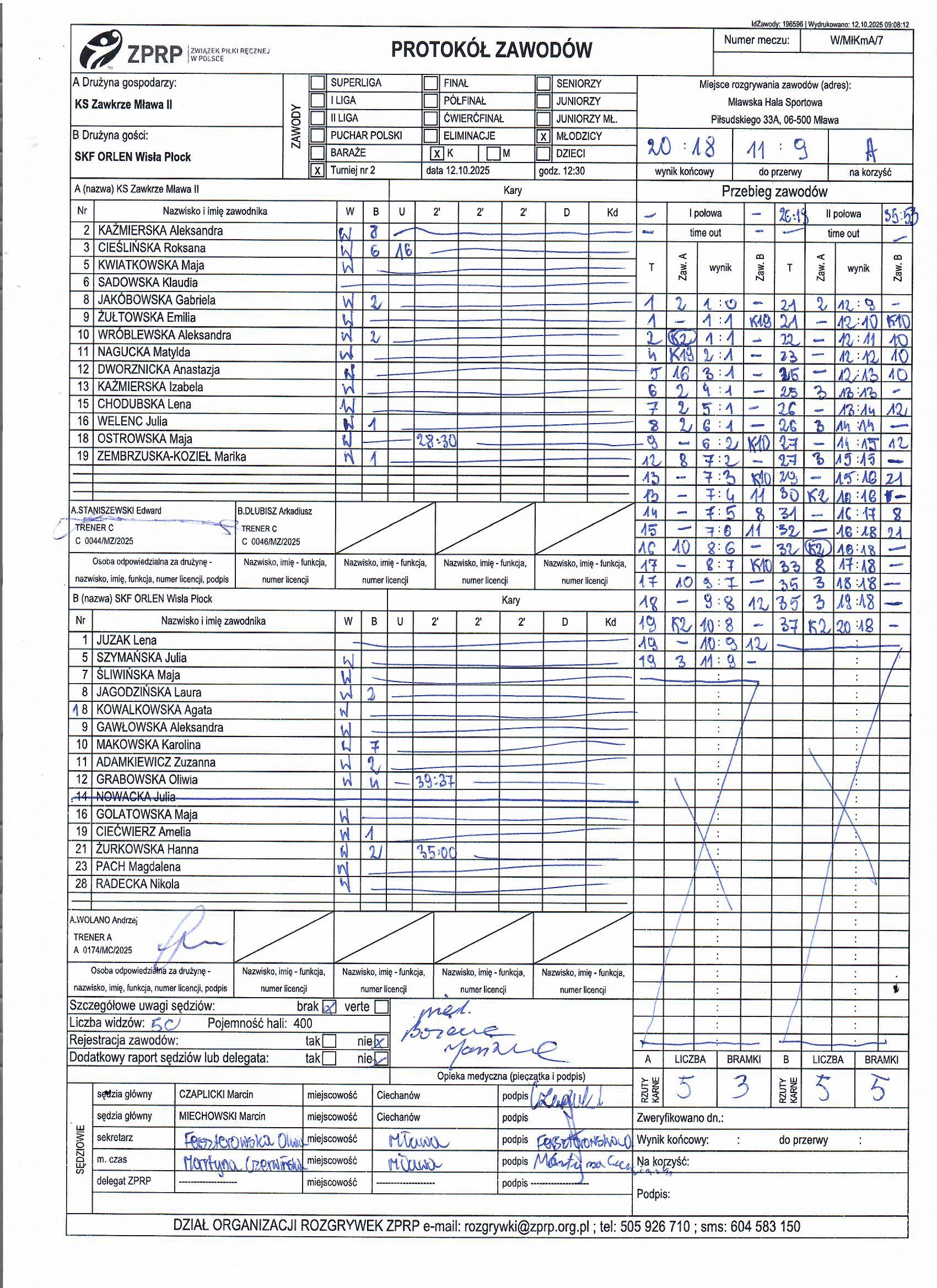 | 13 | SKF ORLEN Wisła Płock | UKS Zielonka | Sędziowie:
