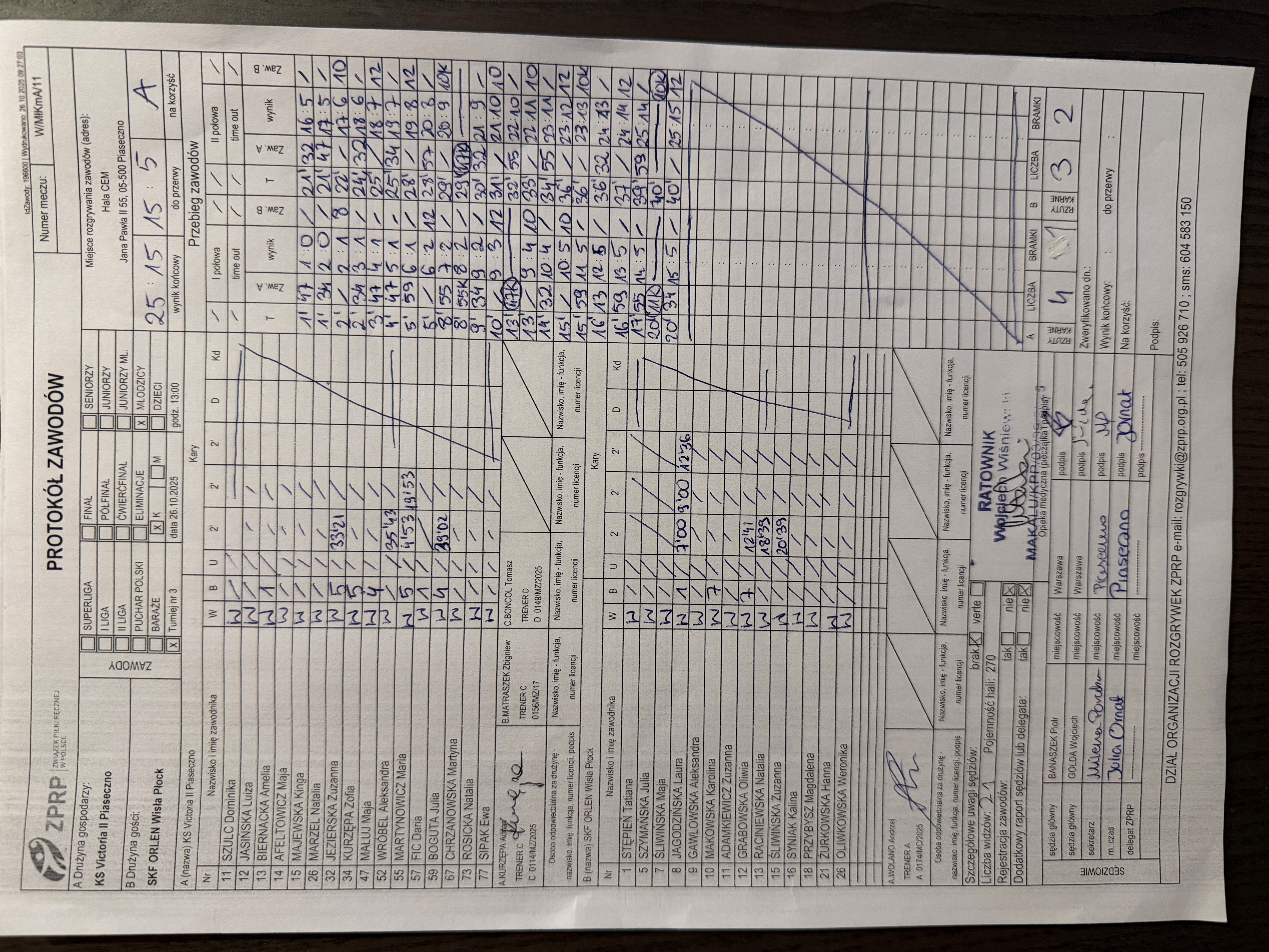 | 26 | KS ZAWIDZ KOŚCIELNY | SKF ORLEN Wisła Płock | Sędziowie: