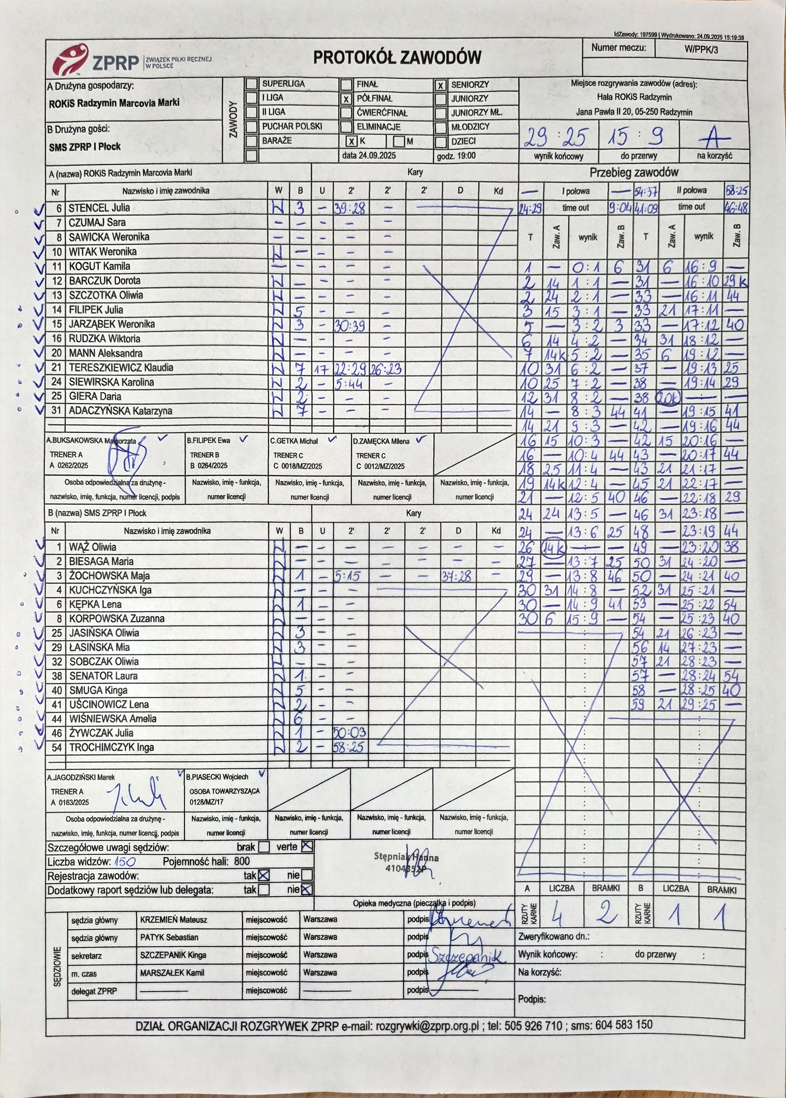 | 3 | 2025-09-24 19:00:00 | ROKiS Radzymin Marcovia Marki | SMS ZPRP I Płock | Sędziowie: KRZEMIEŃ Mateusz PATYK Sebastian Delegat: |