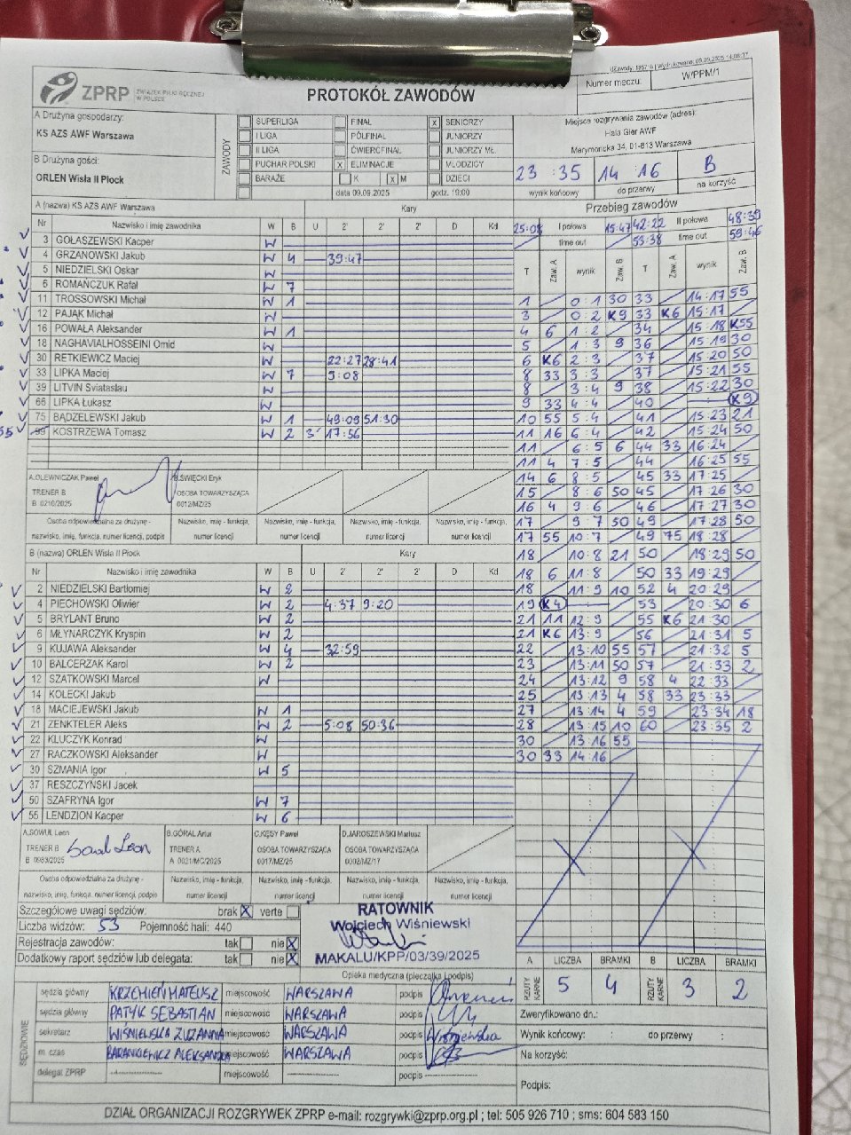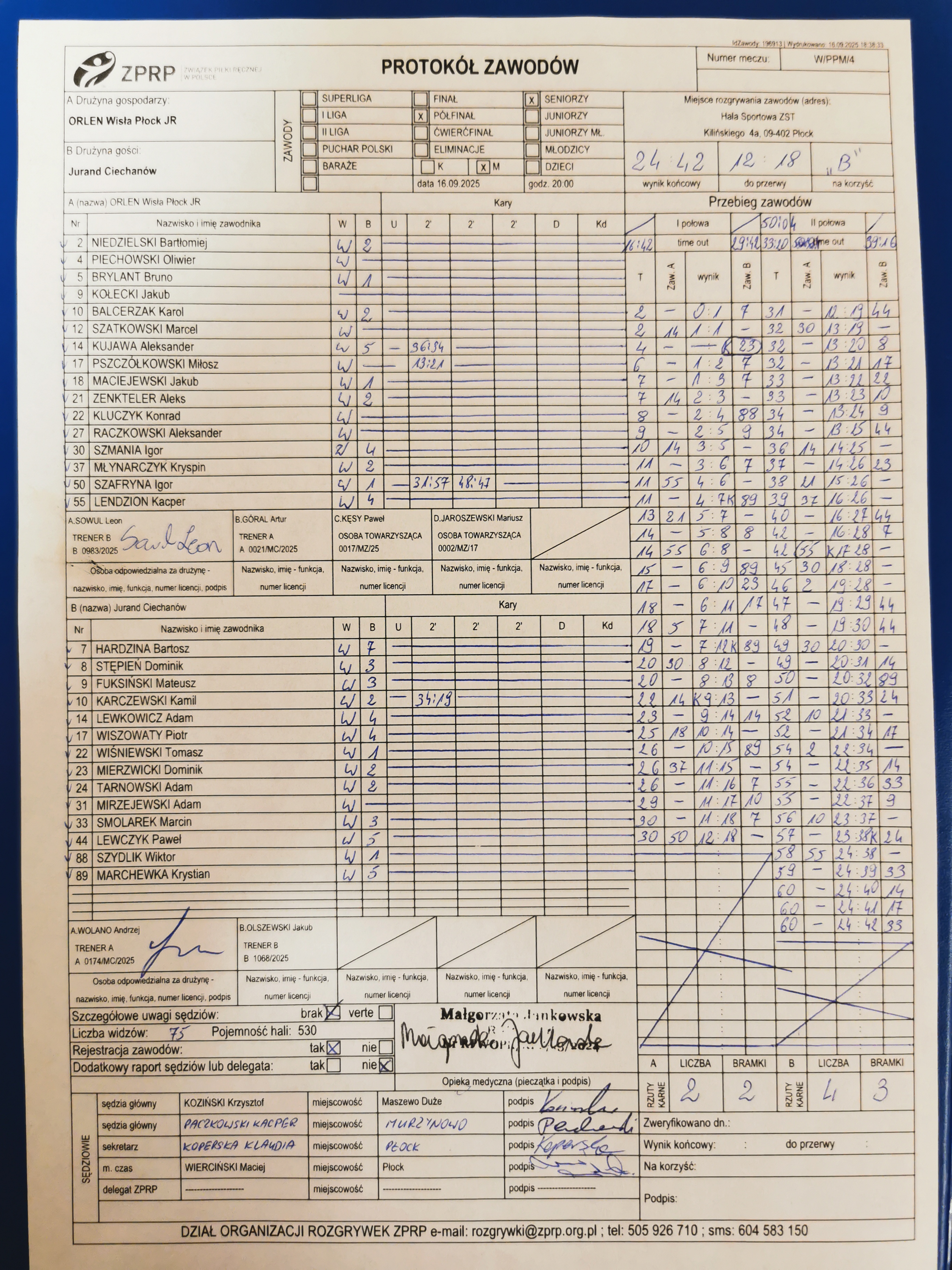 | 4 | 2025-09-16 20:00:00 | ORLEN Wisła Płock JR | Jurand Ciechanów | Sędziowie: KOZIŃSKI Krzysztof Delegat: |