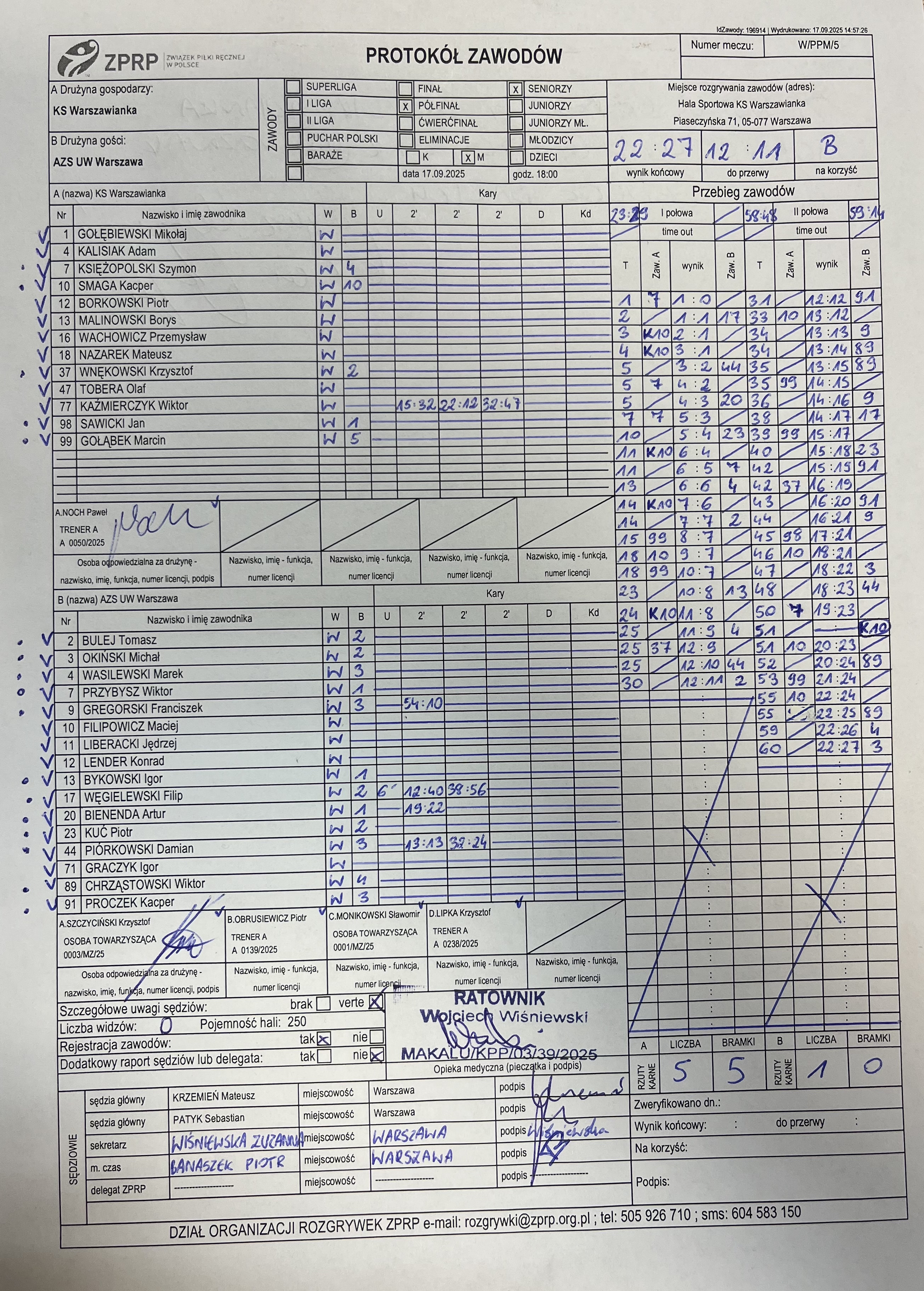 | 5 | 2025-09-17 18:00:00 | KS Warszawianka | AZS UW Warszawa | Sędziowie: KRZEMIEŃ Mateusz PATYK Sebastian Delegat: |